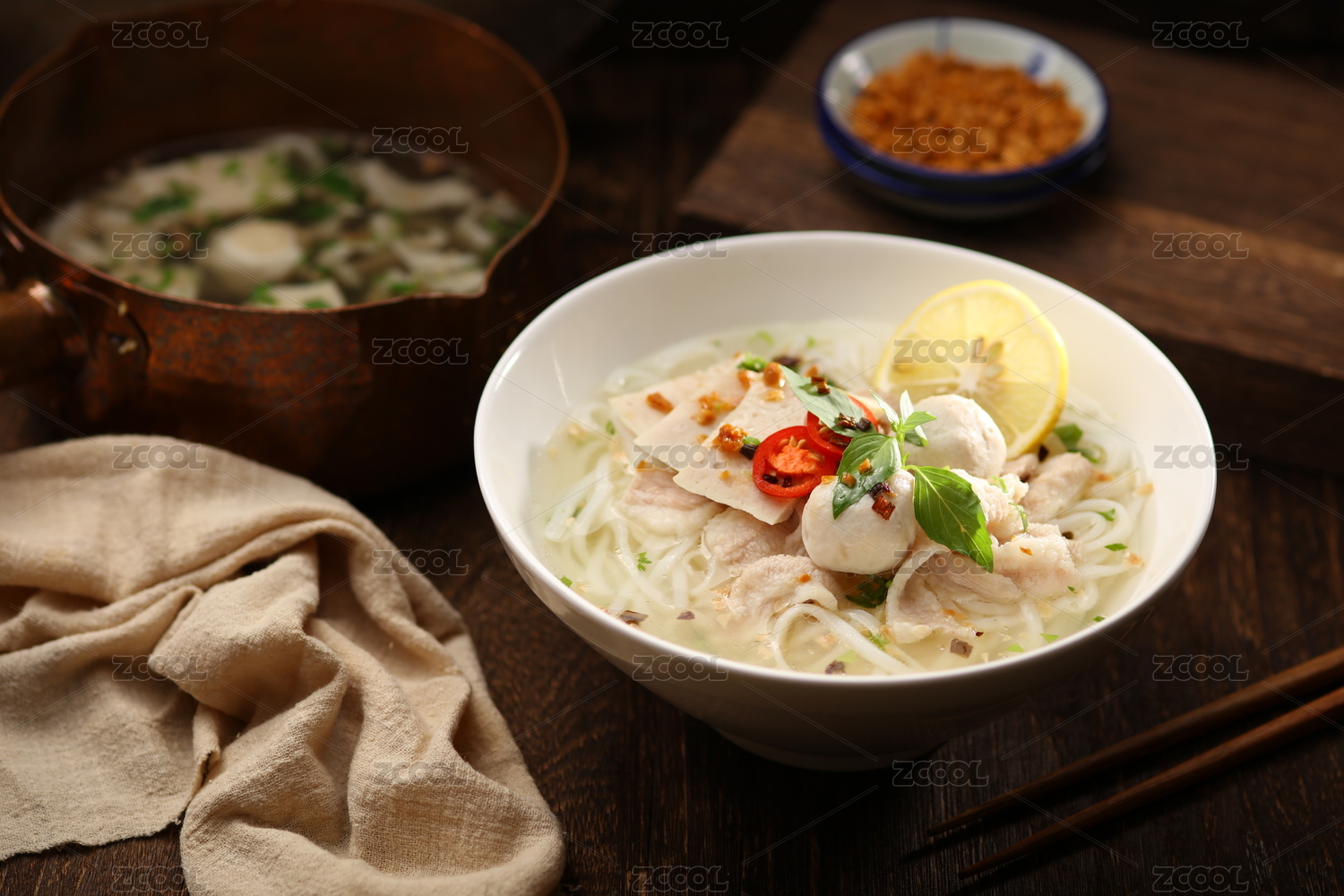 柠檬肉丸粿条面条汤