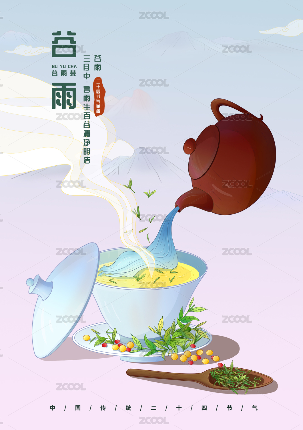24节气谷雨美食插画海报