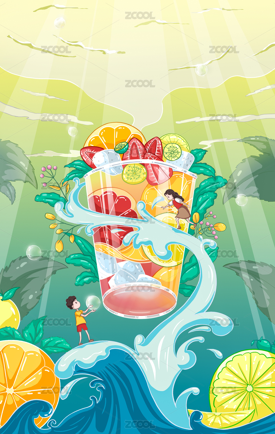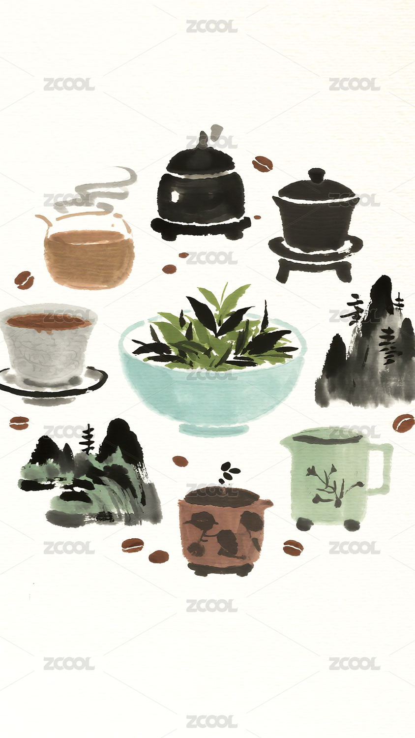 茶饮品插画包装封面海报高清素材
