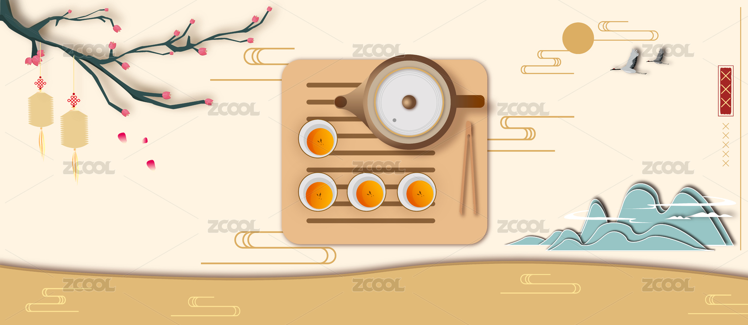 中国茶道传统文化,道家饮茶健康养生插画背景海报
