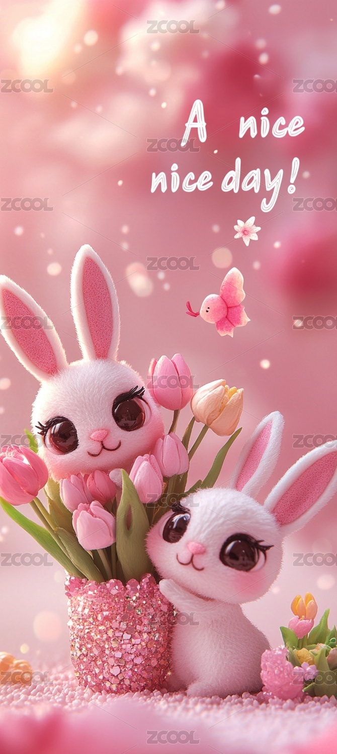 儿童卡通可爱草莓小兔子无缝四方连续背景