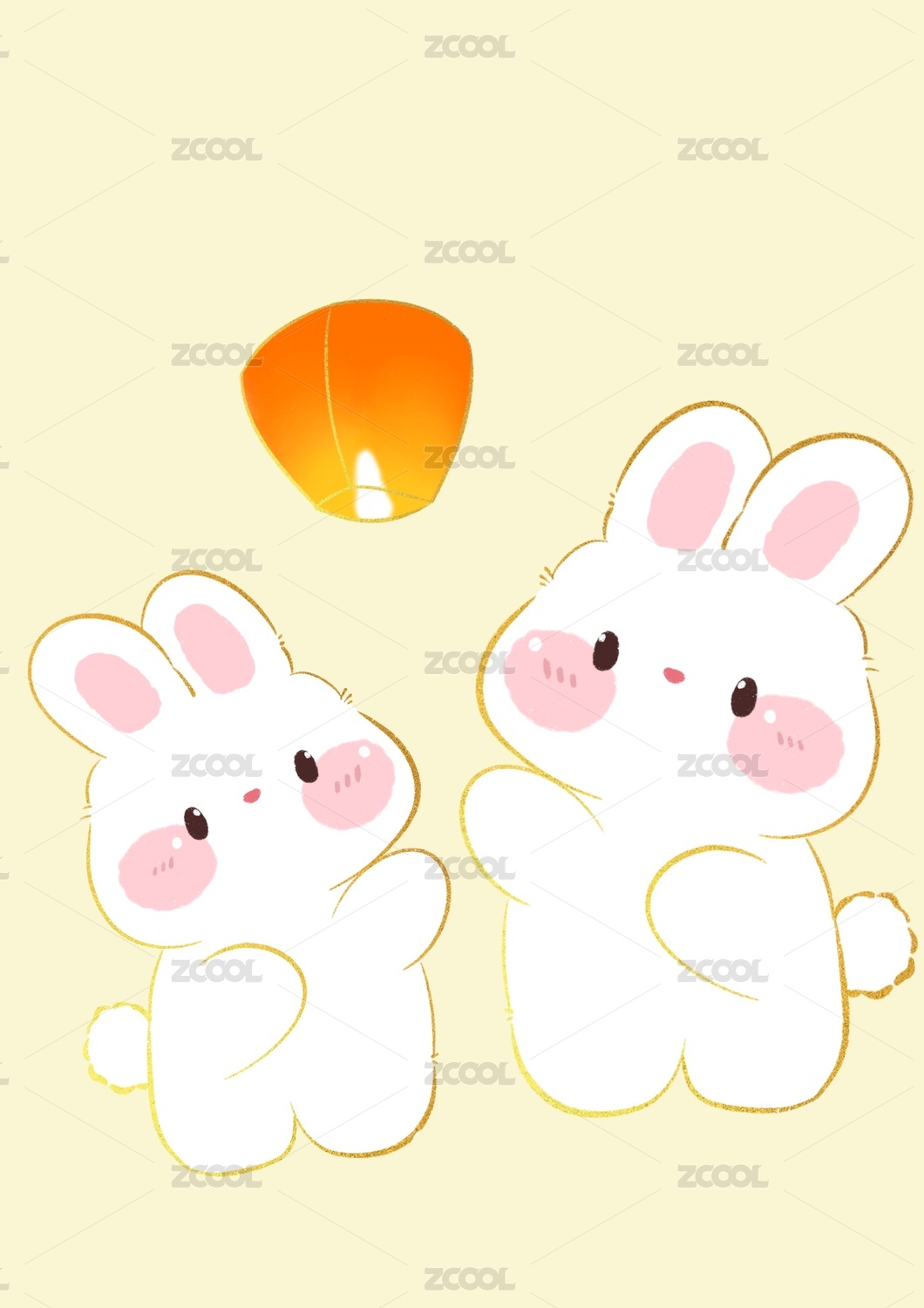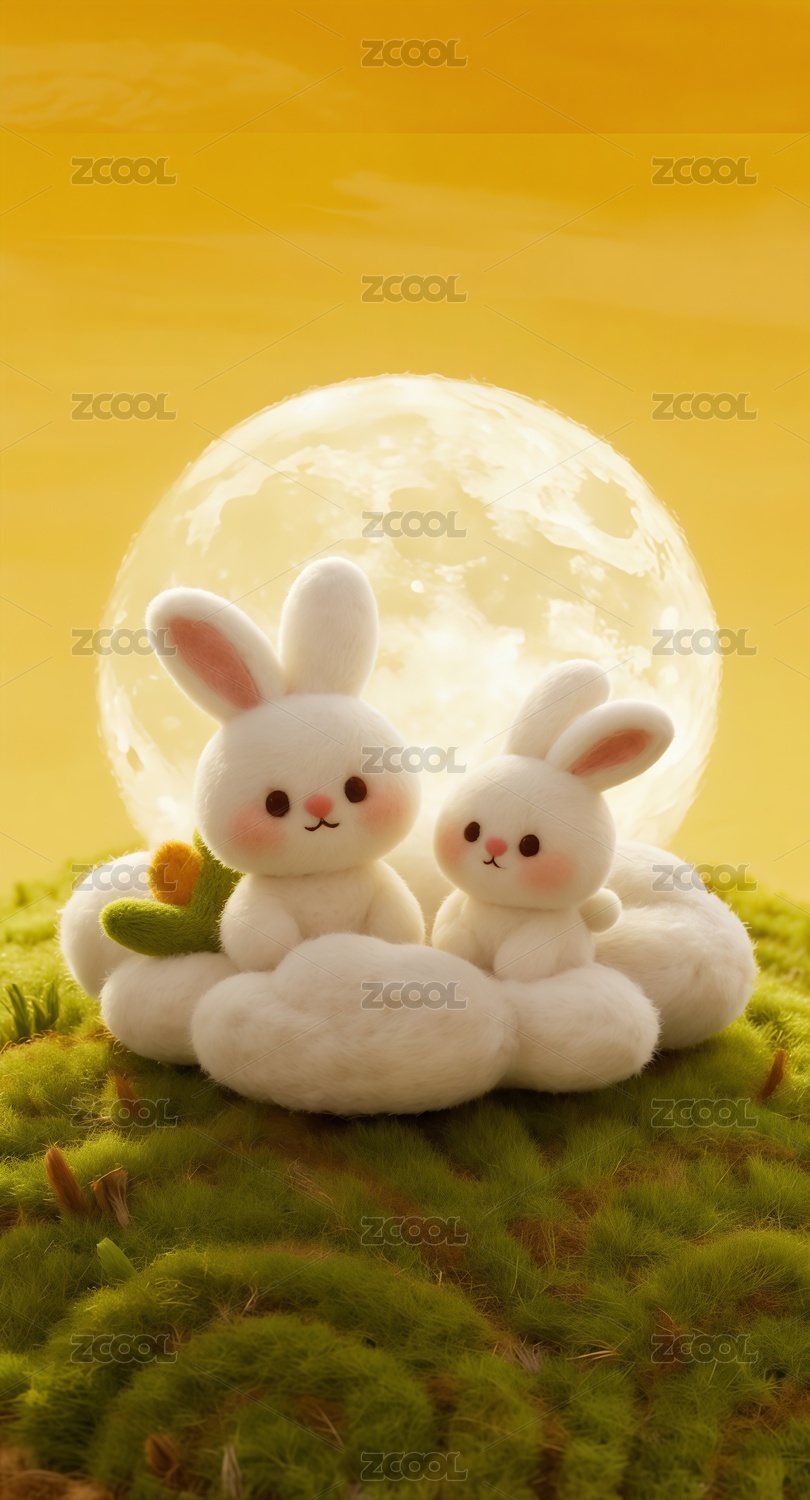 穿着绿色衣服的小兔子害羞的永花遮脸