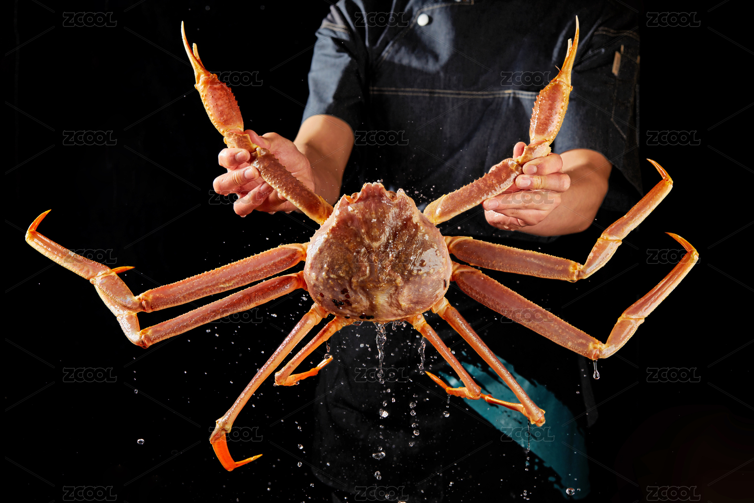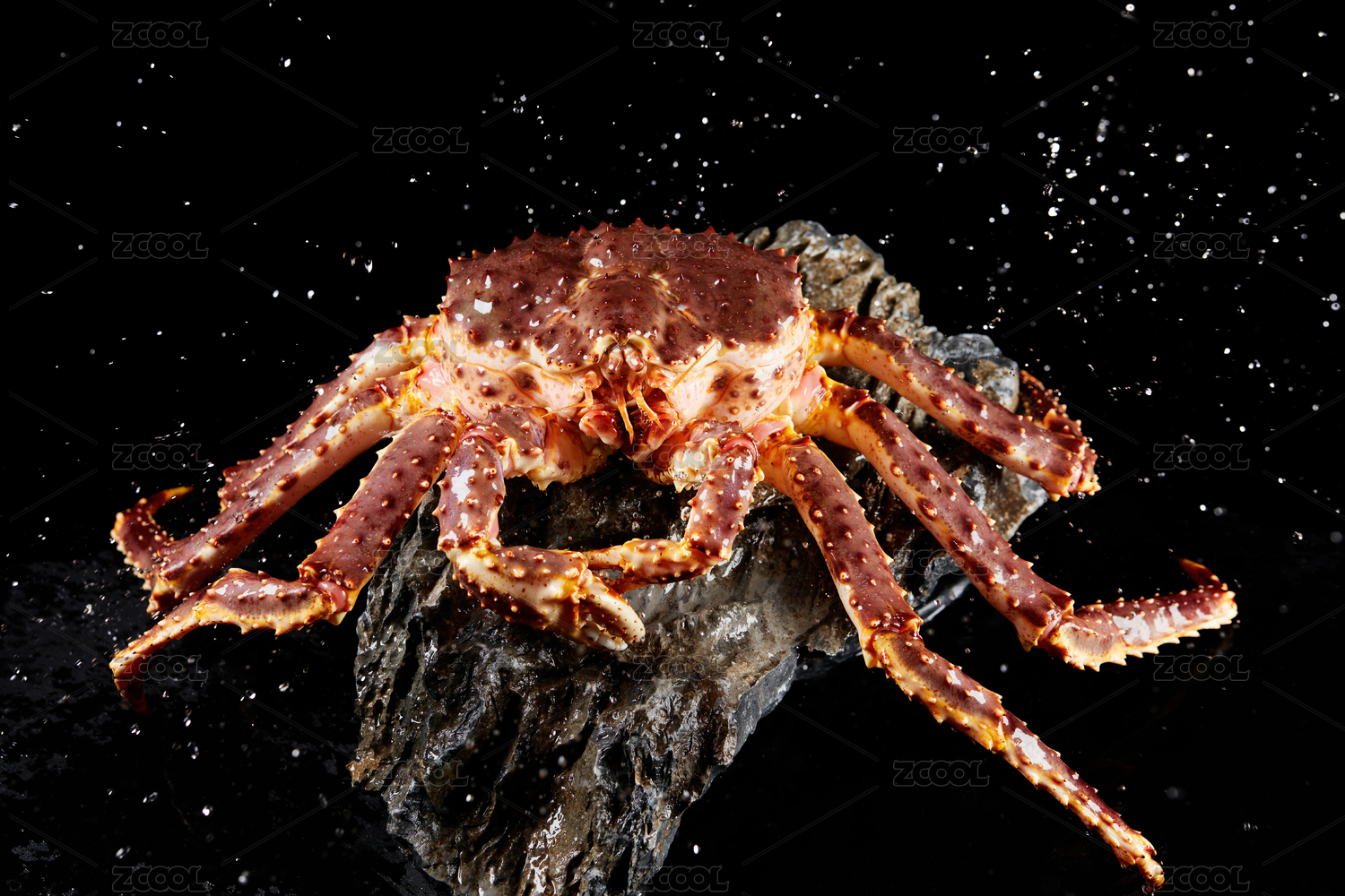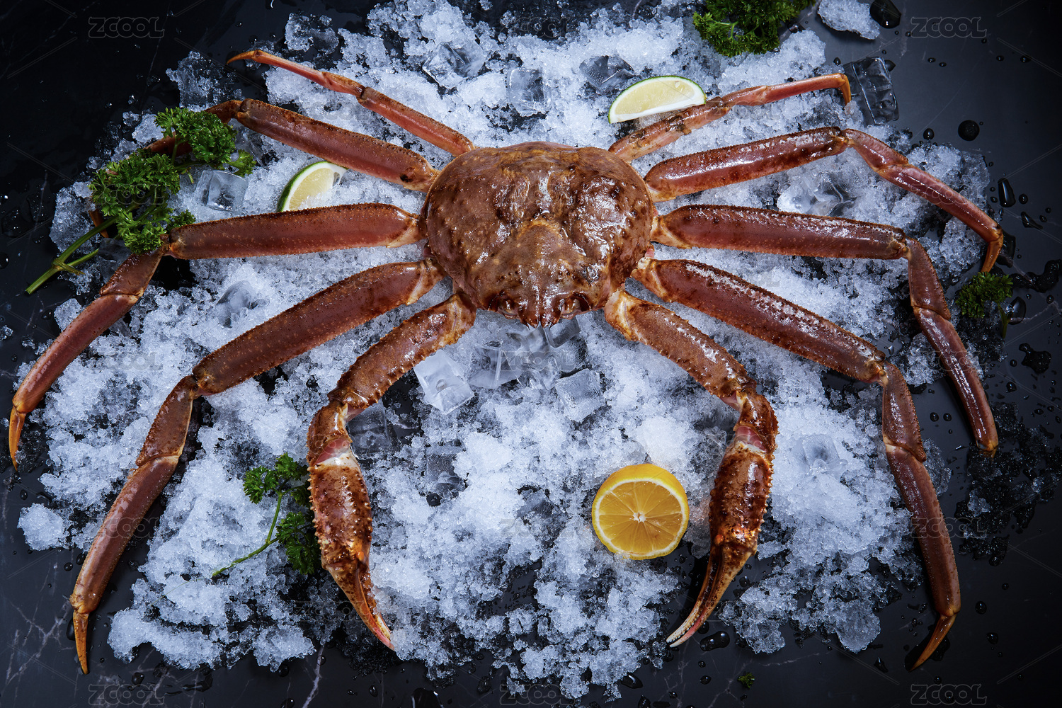 黑色背景冰块上放着阿拉斯加长脚蟹