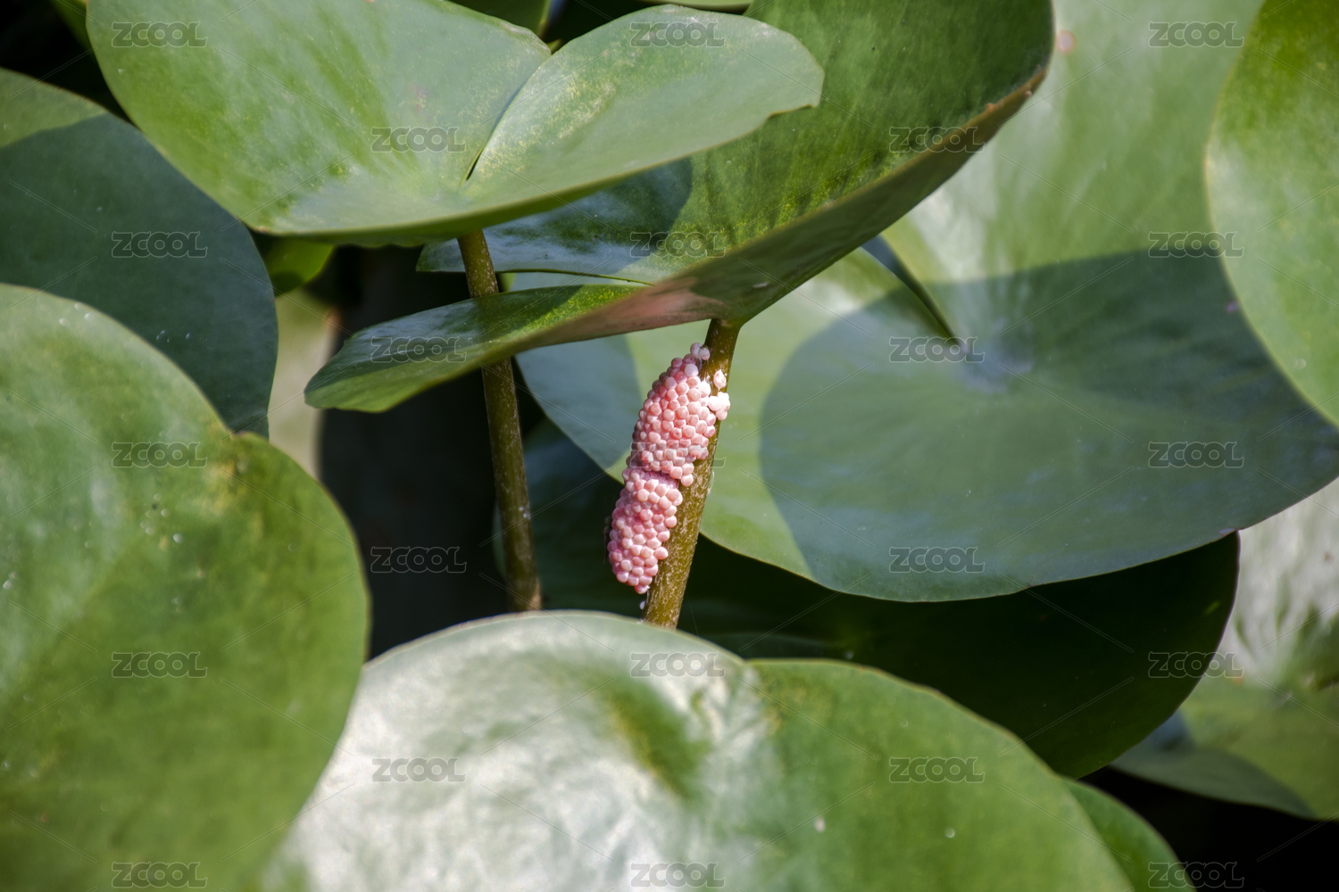 夏季公园湖边的福寿螺卵