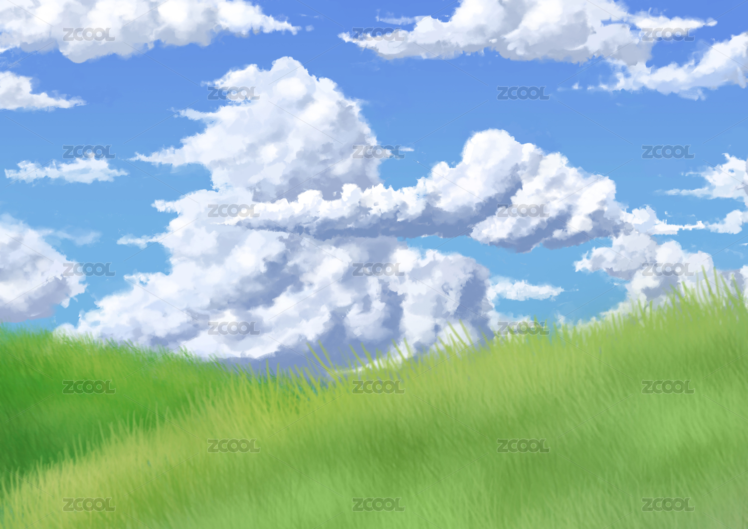 蓝天白云青草背景