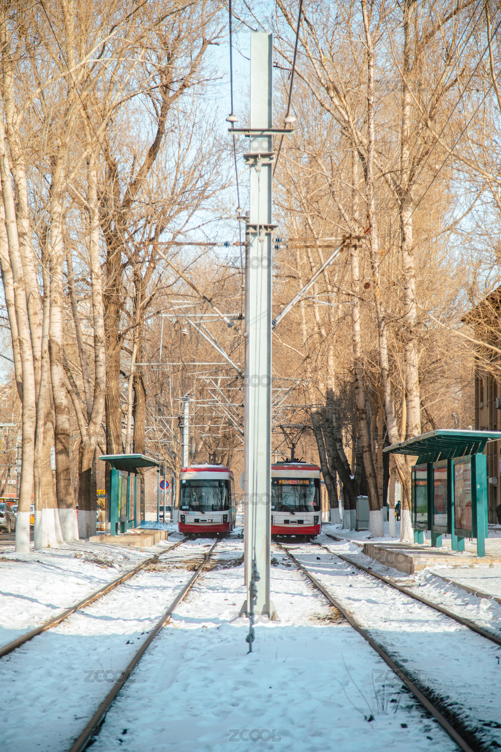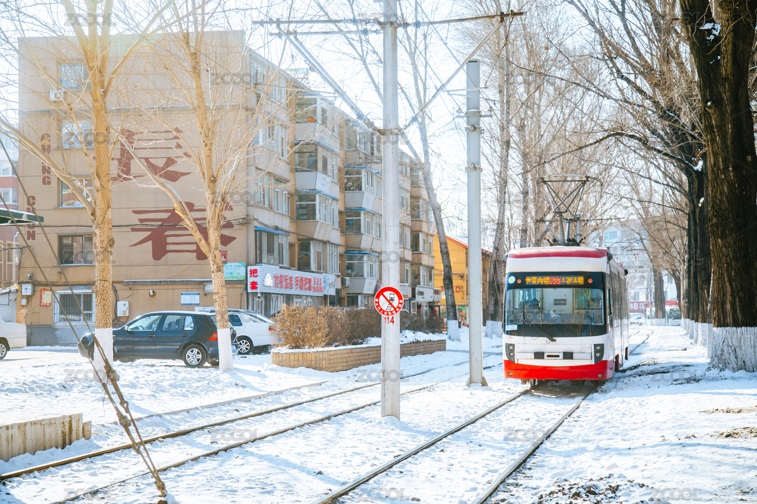吉林长春春城大街54路有轨电车冬天雪景