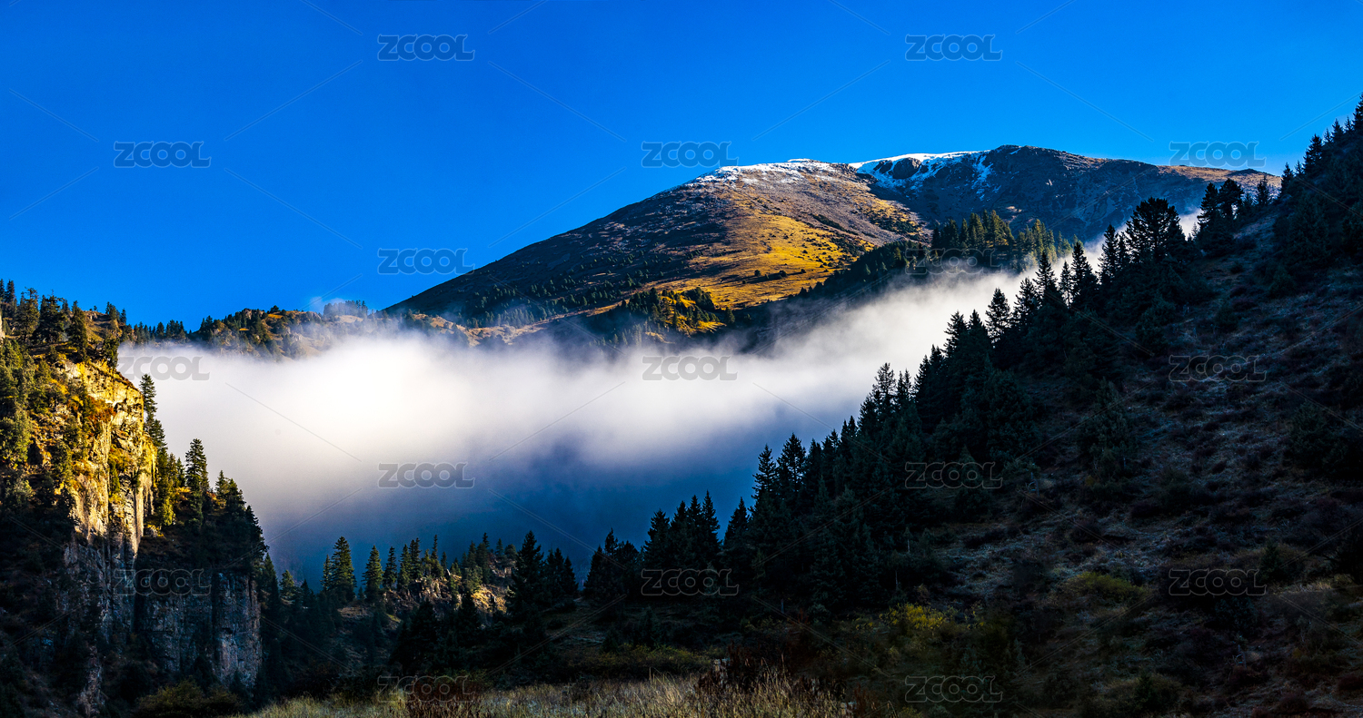 中国四川甘孜色达到翁达548国道上的晨雾