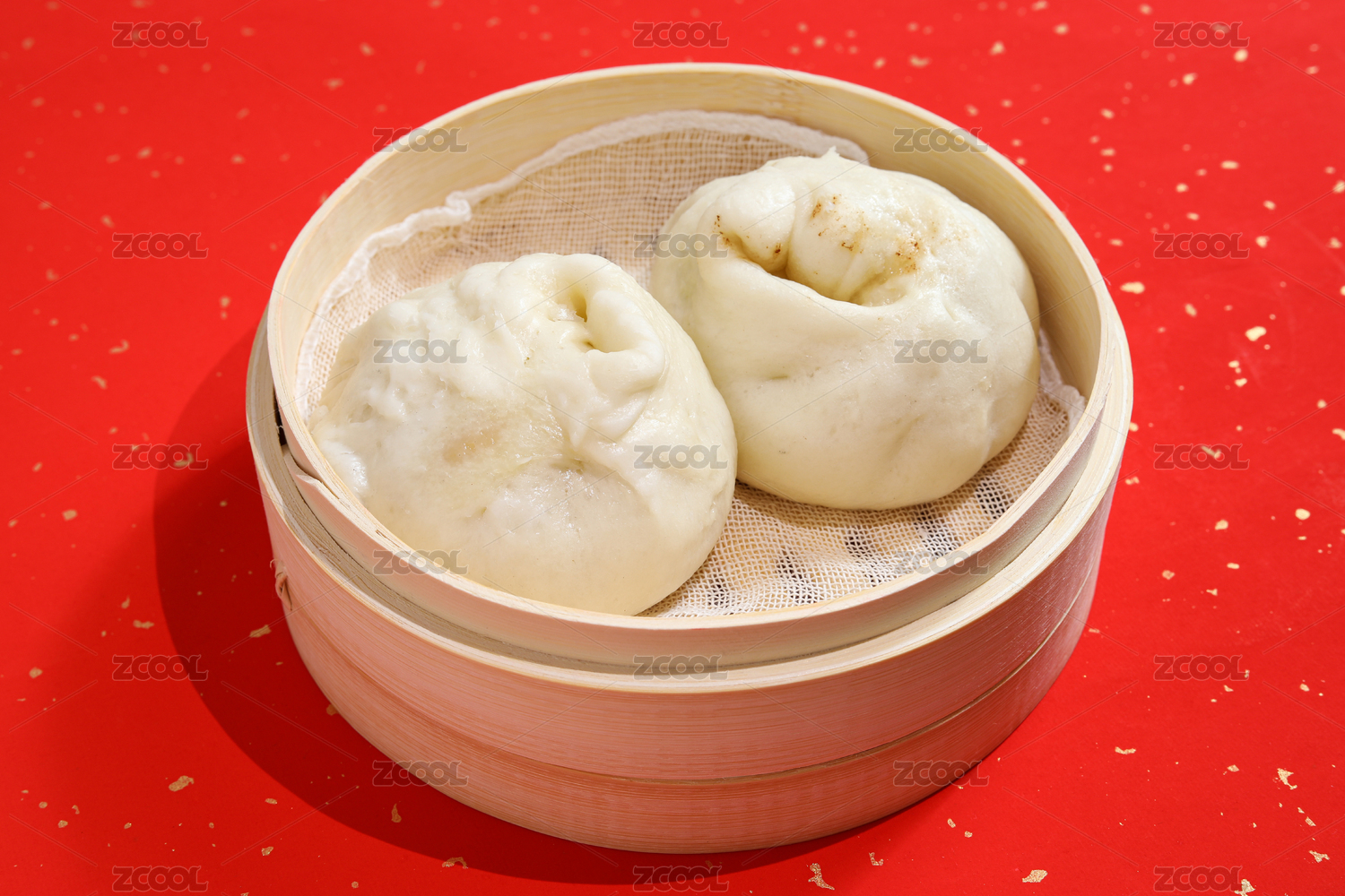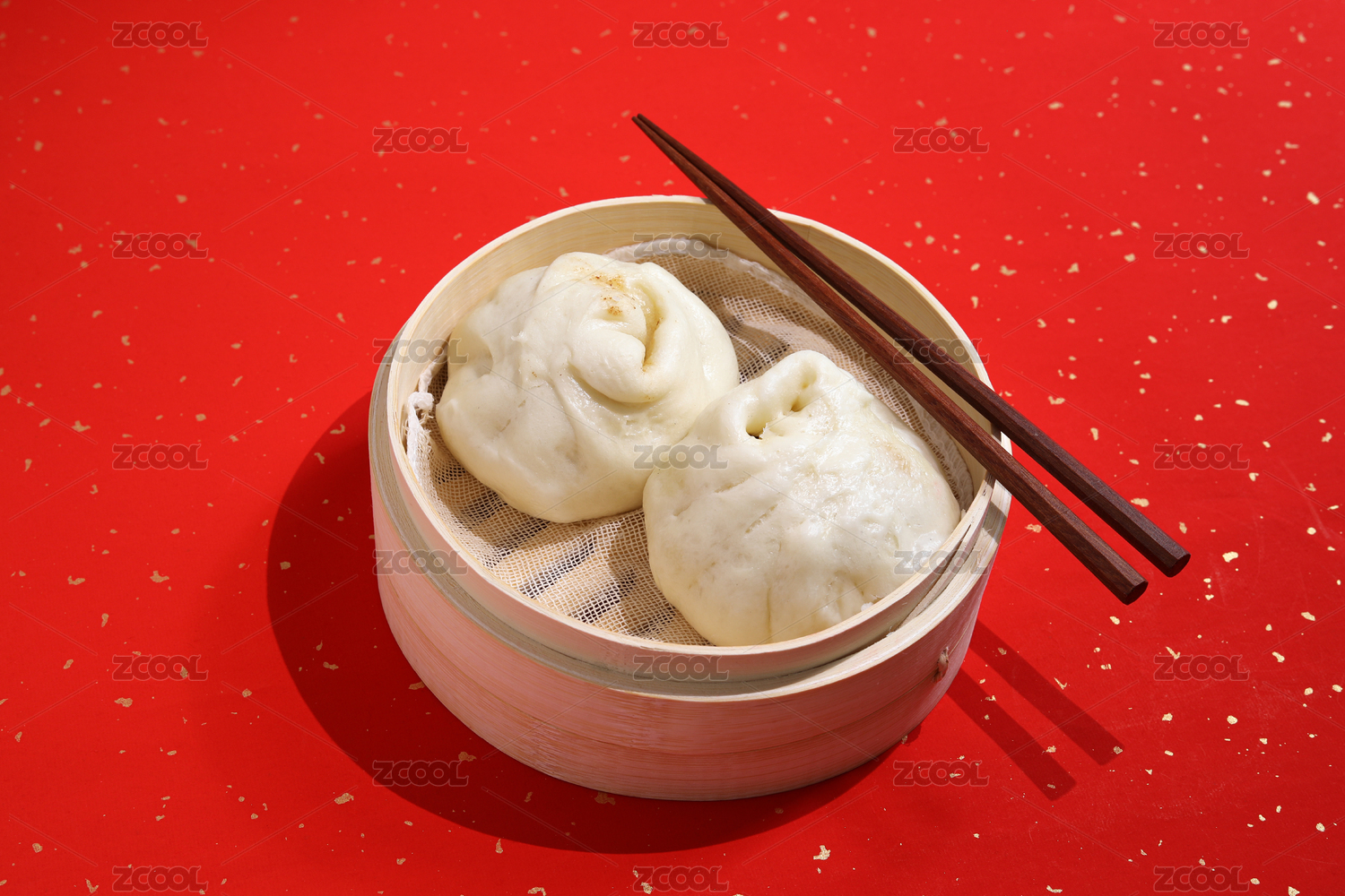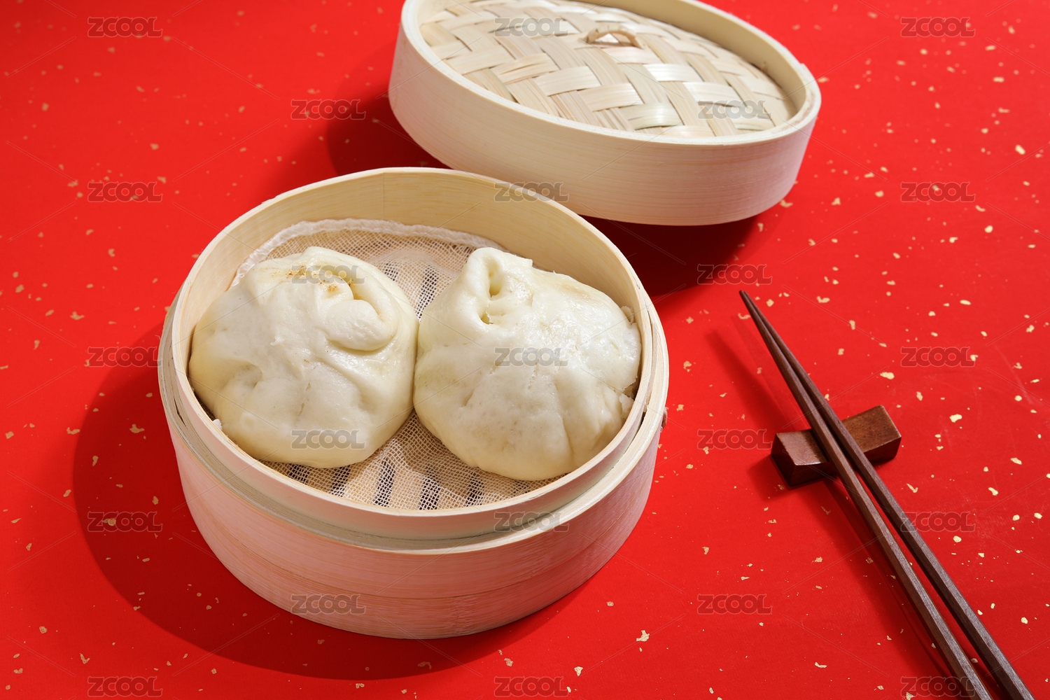 桌面上的一蒸笼中国传统中餐早餐美食包子