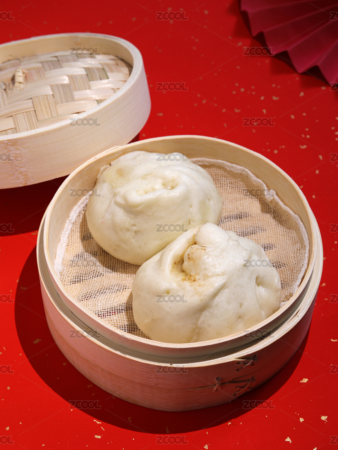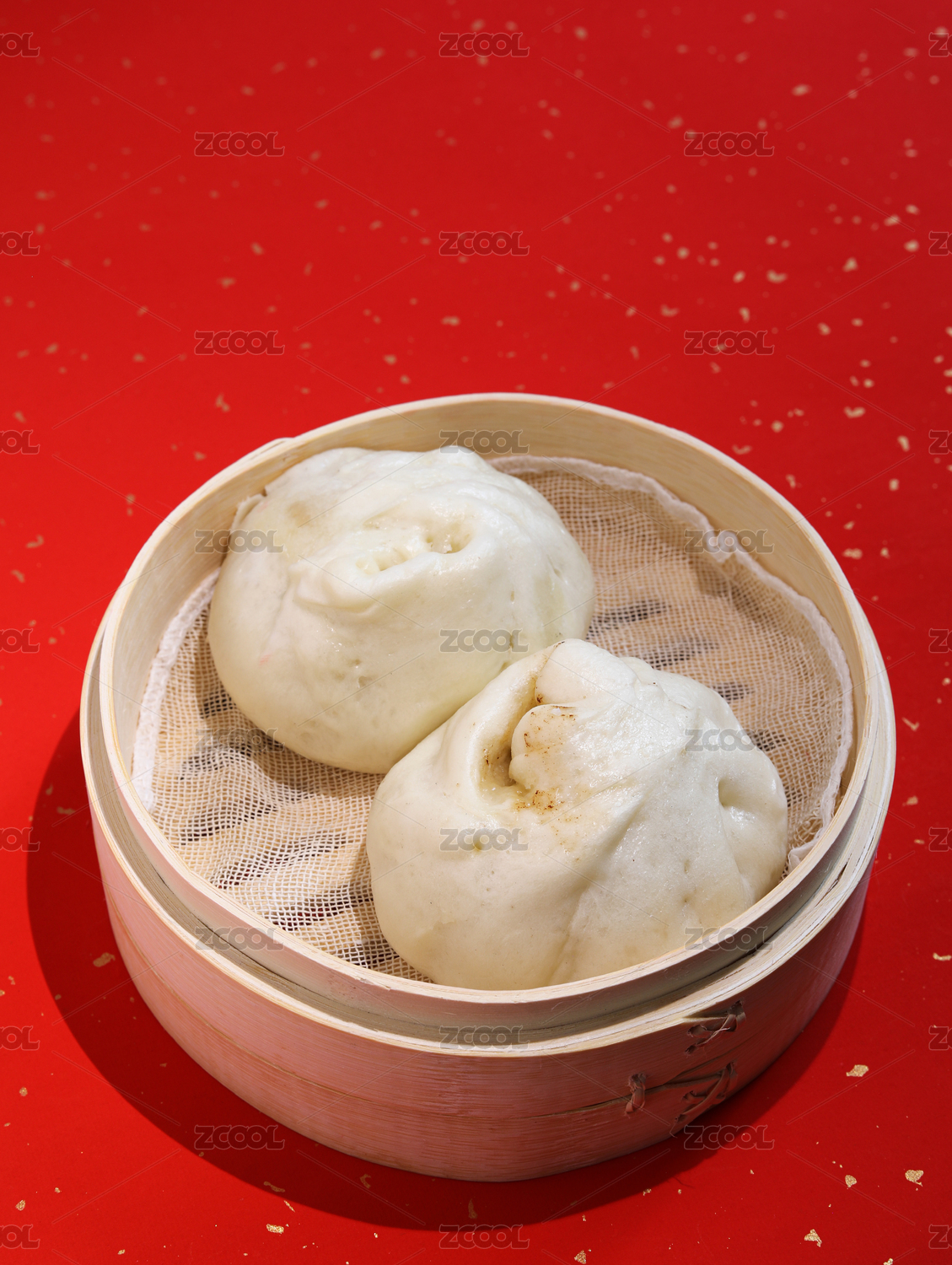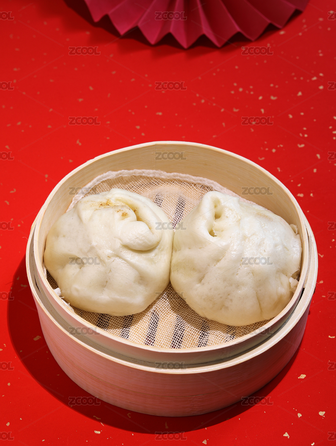 桌面上的一蒸笼中国传统中餐早餐美食包子