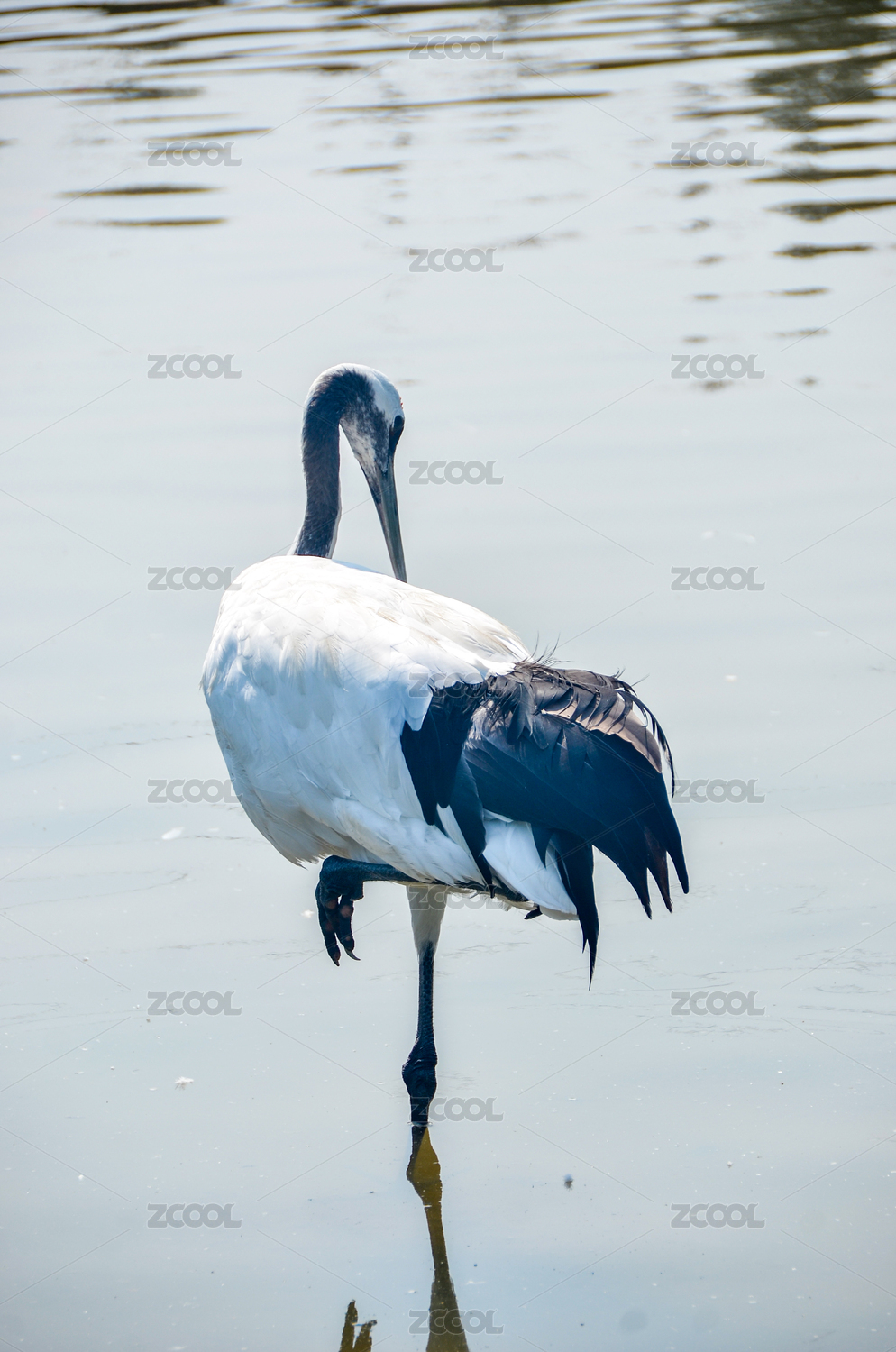 一只丹顶鹤向同伴跳起了求偶舞蹈