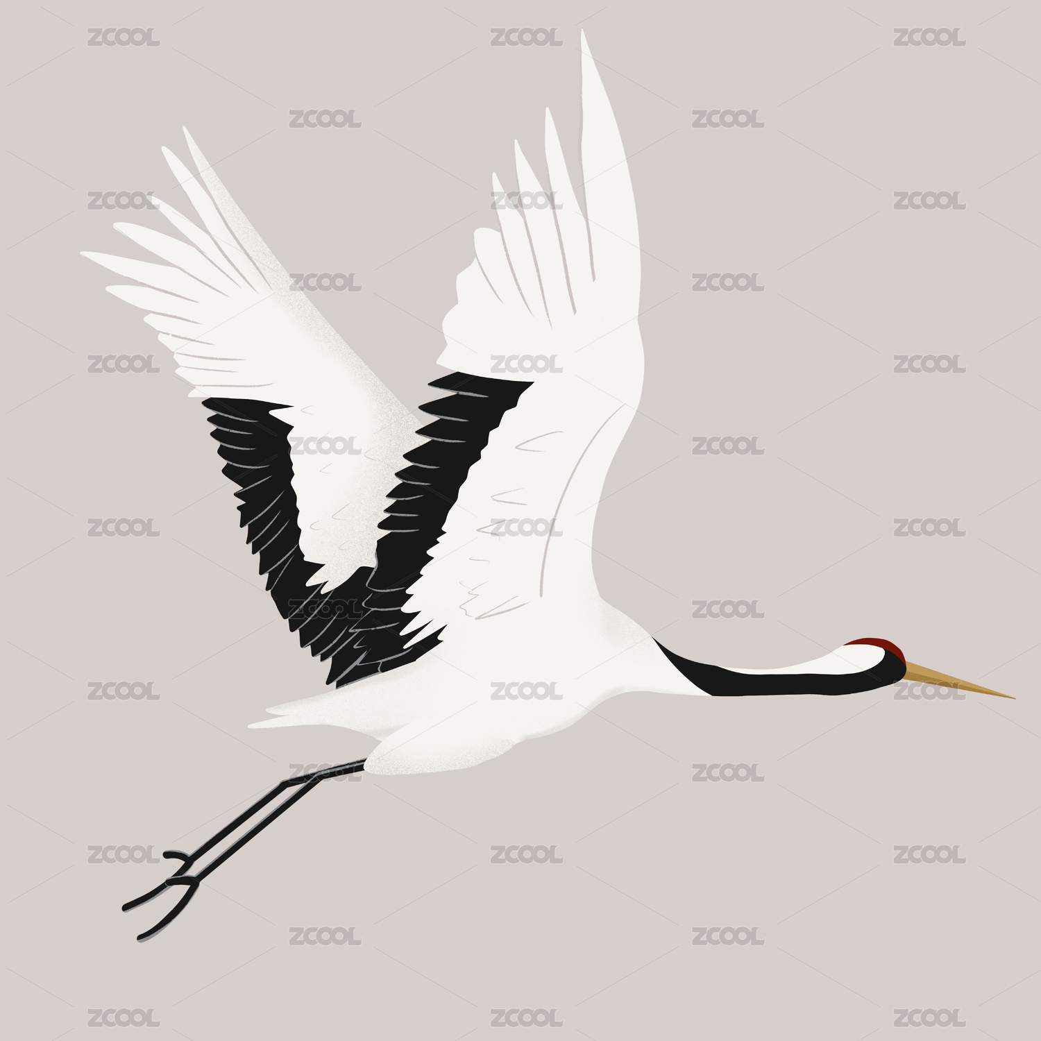 国潮风重阳节插画,秋日风光和飞翔的丹顶鹤
