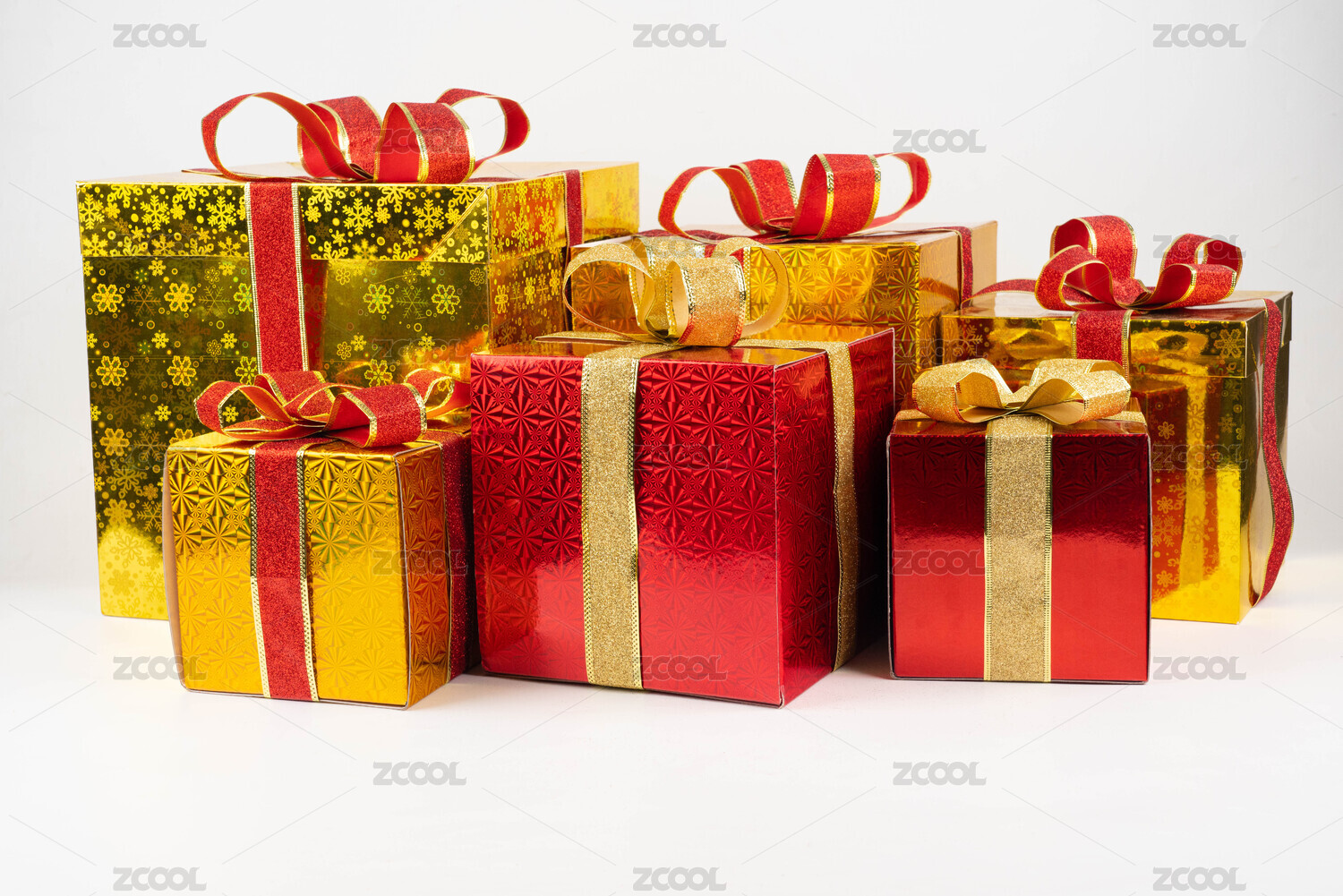 节日活动丝绸高档彩色礼品盒包装在白色背景孤立