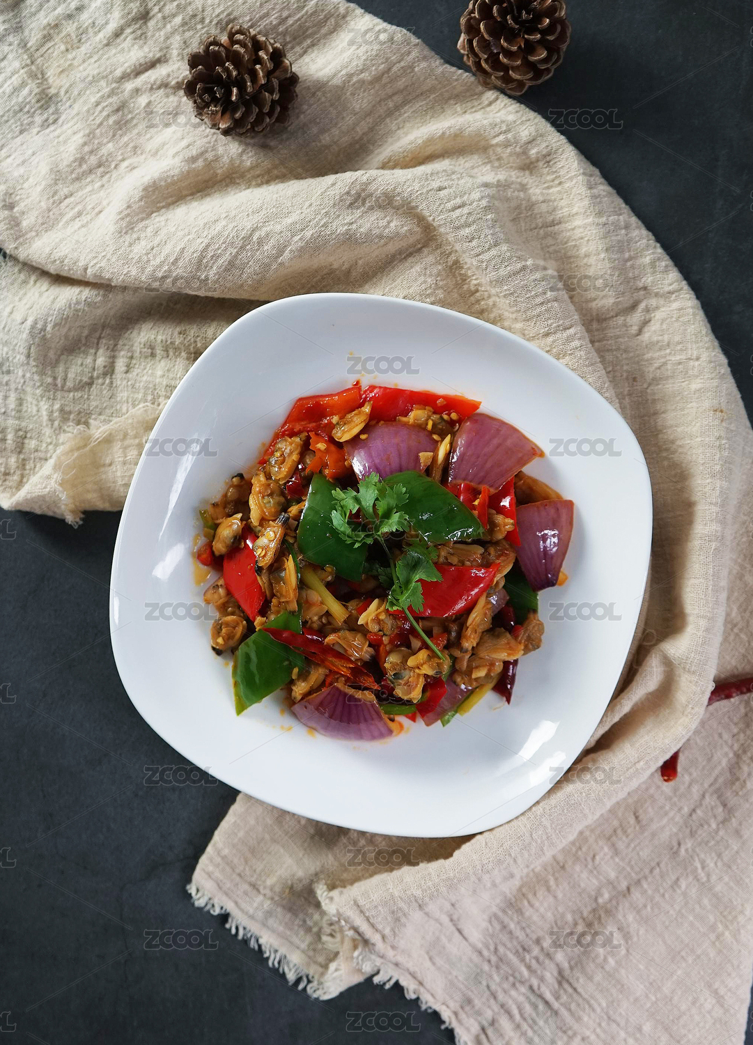香辣杂色蛤肉