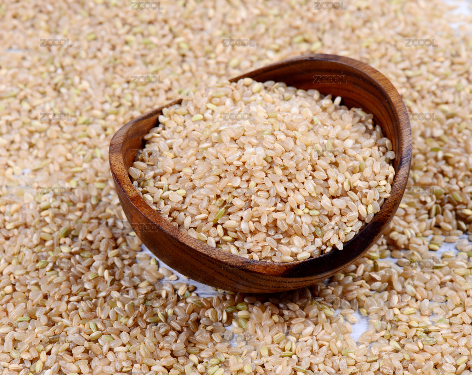 米黄色木碗里的营养谷物有机糙米