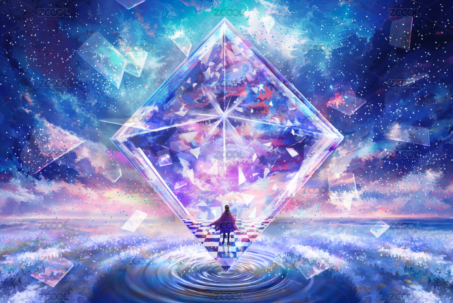 炫彩渐变粉色钻石情人节爱情炫彩背景