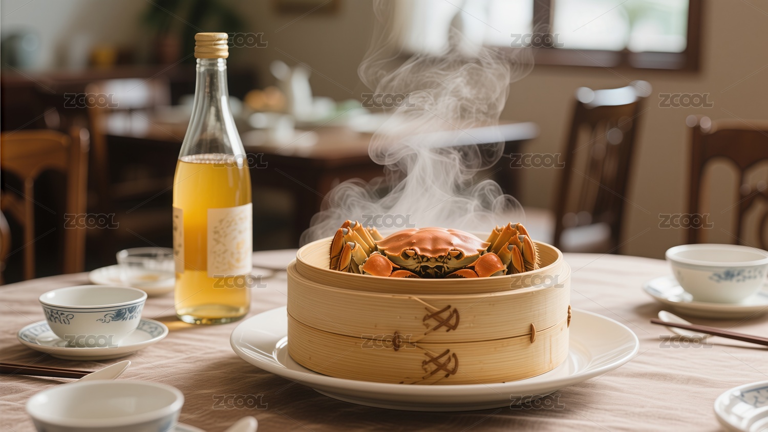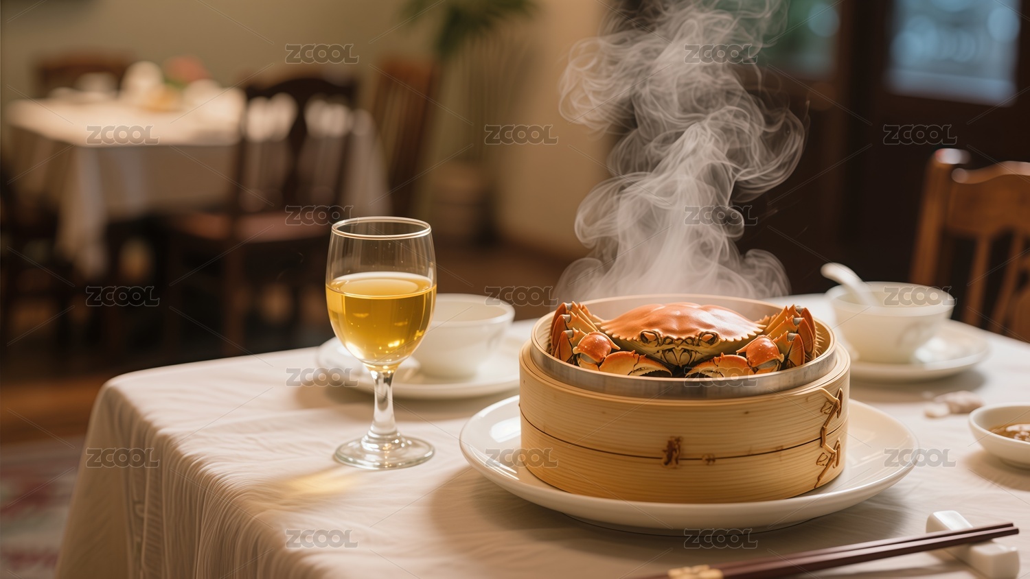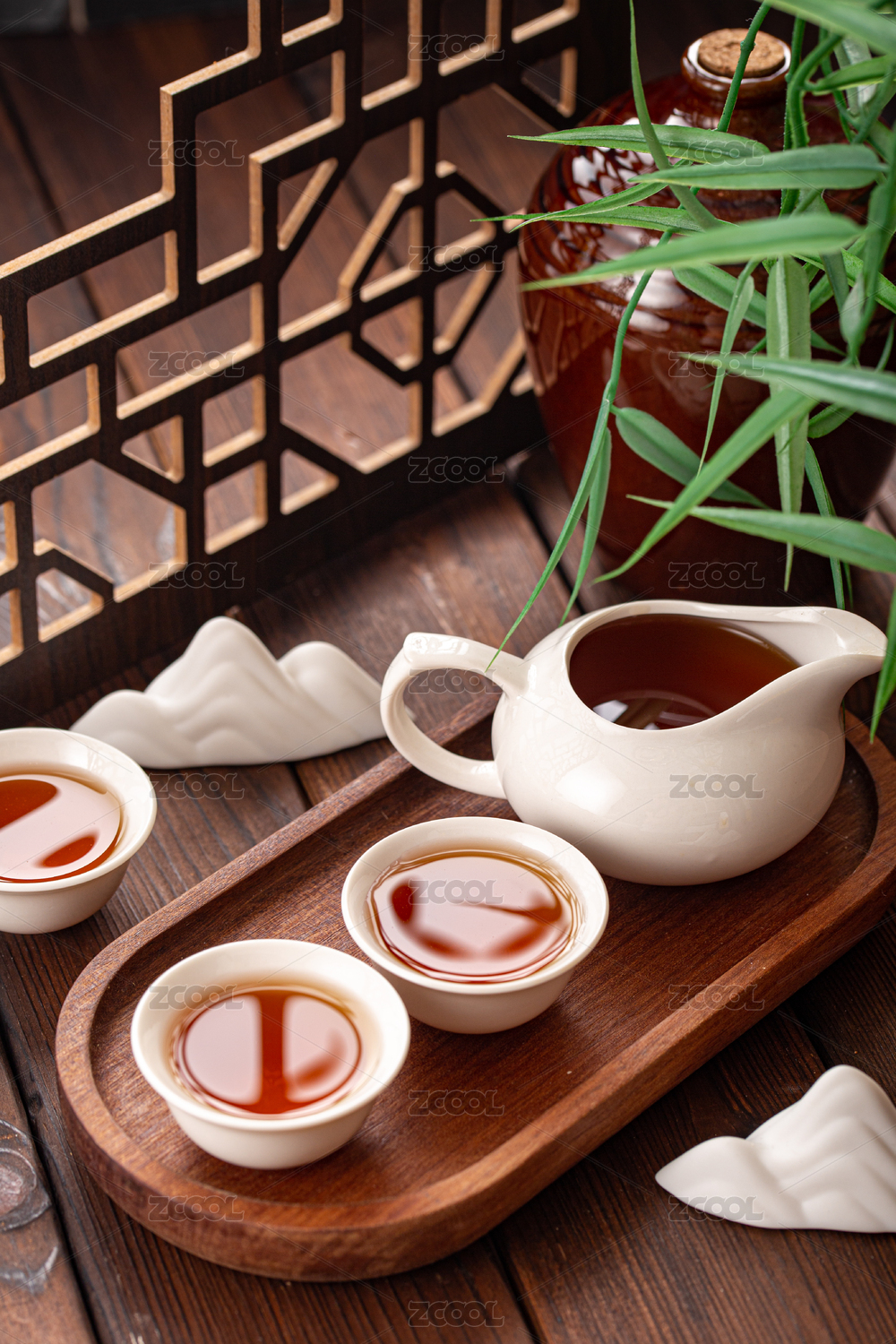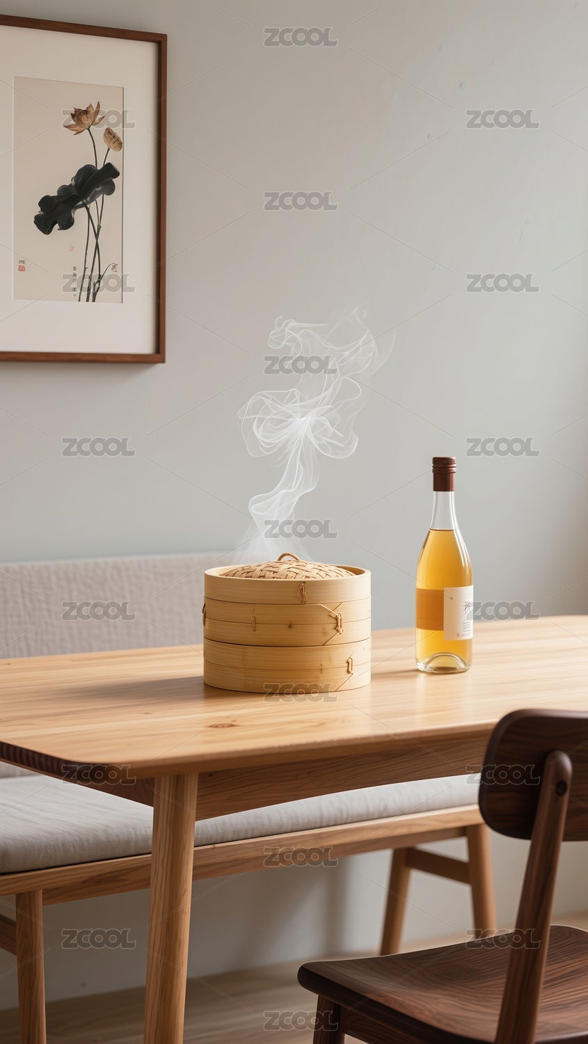 木质桌面上从竹筒里倒出黄酒到杯子里