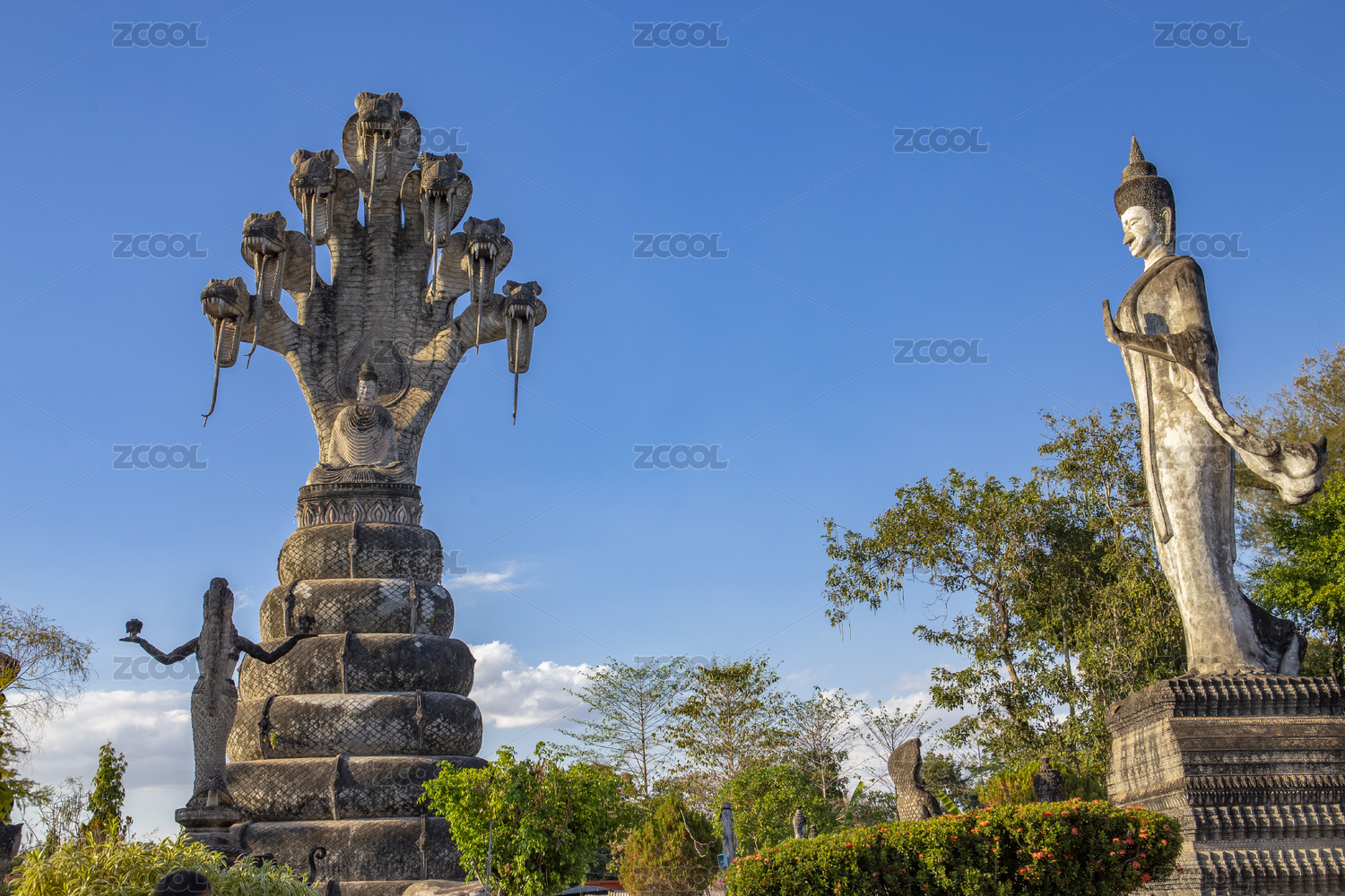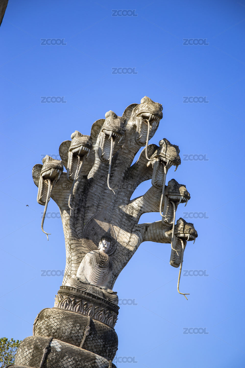 泰国廊开撒拉教窟的娜迦释迦摩尼佛雕塑