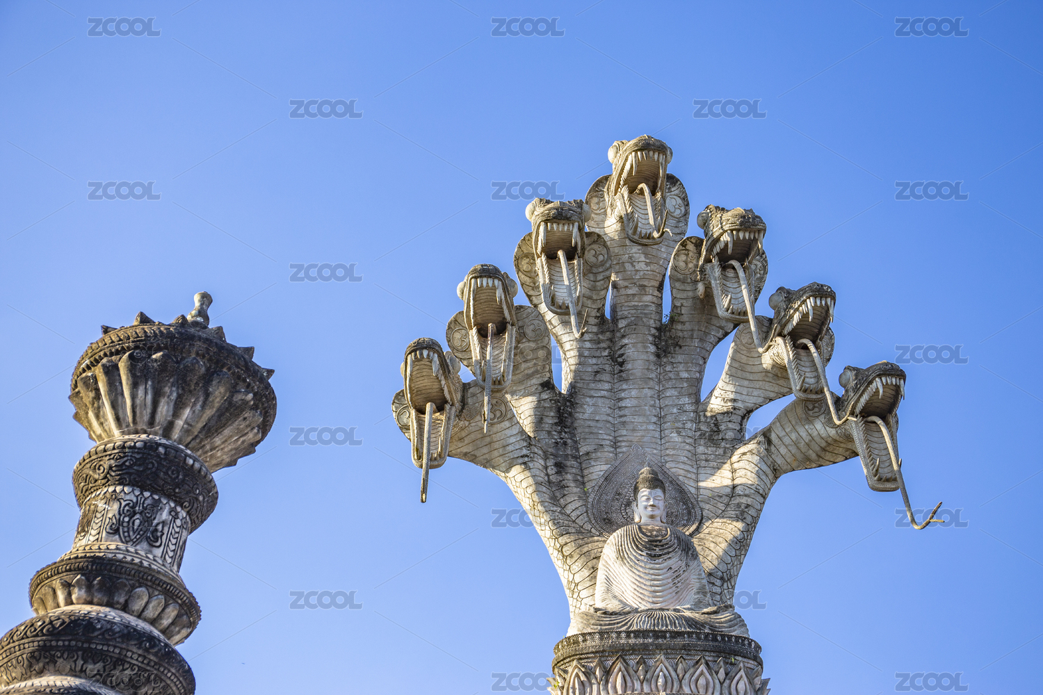 泰国廊开撒拉教窟七头娜迦与释迦摩尼佛像