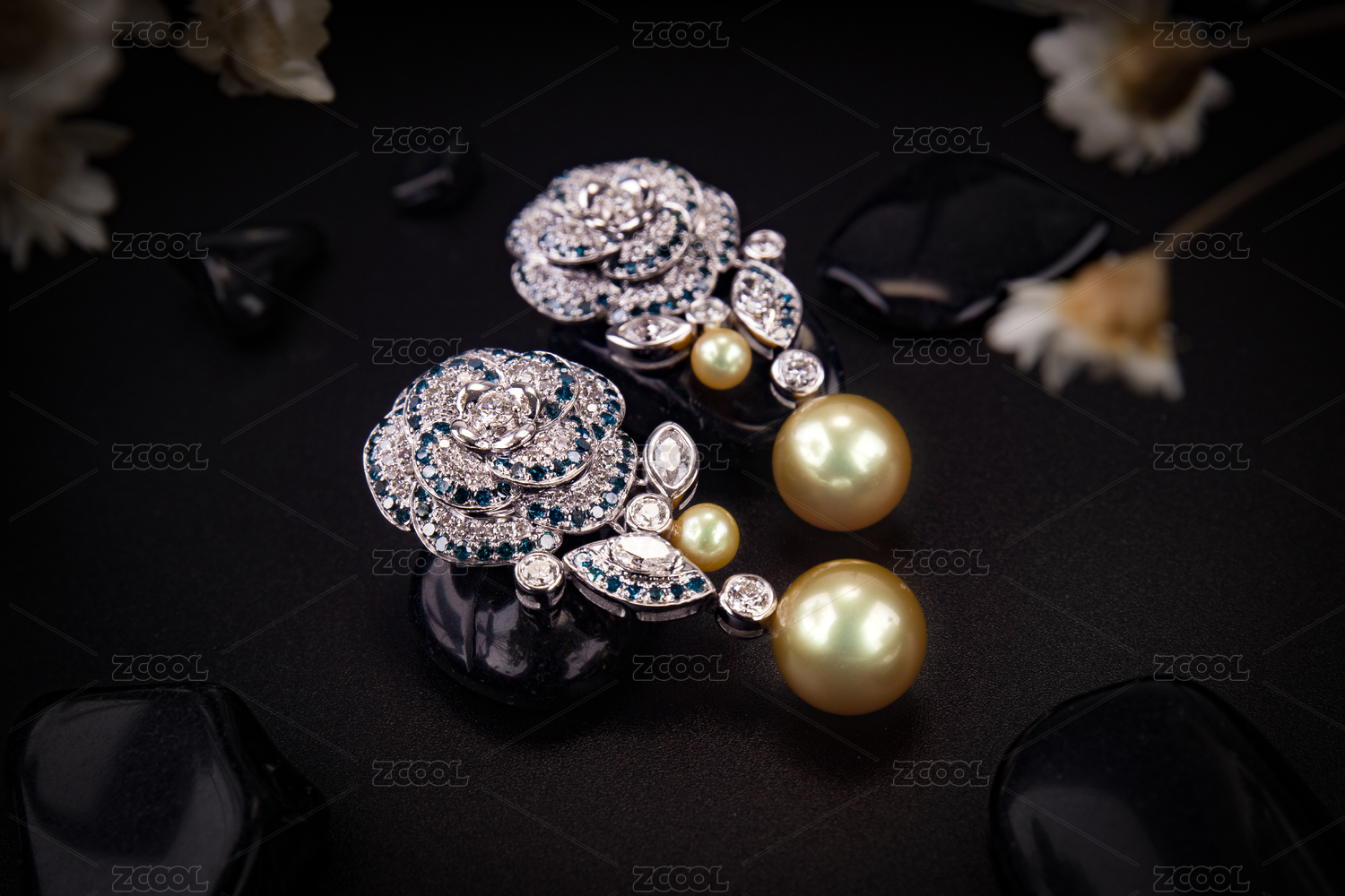 深色背景上的时尚耳坠首饰