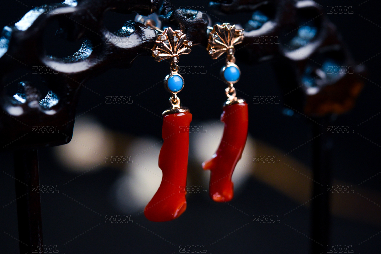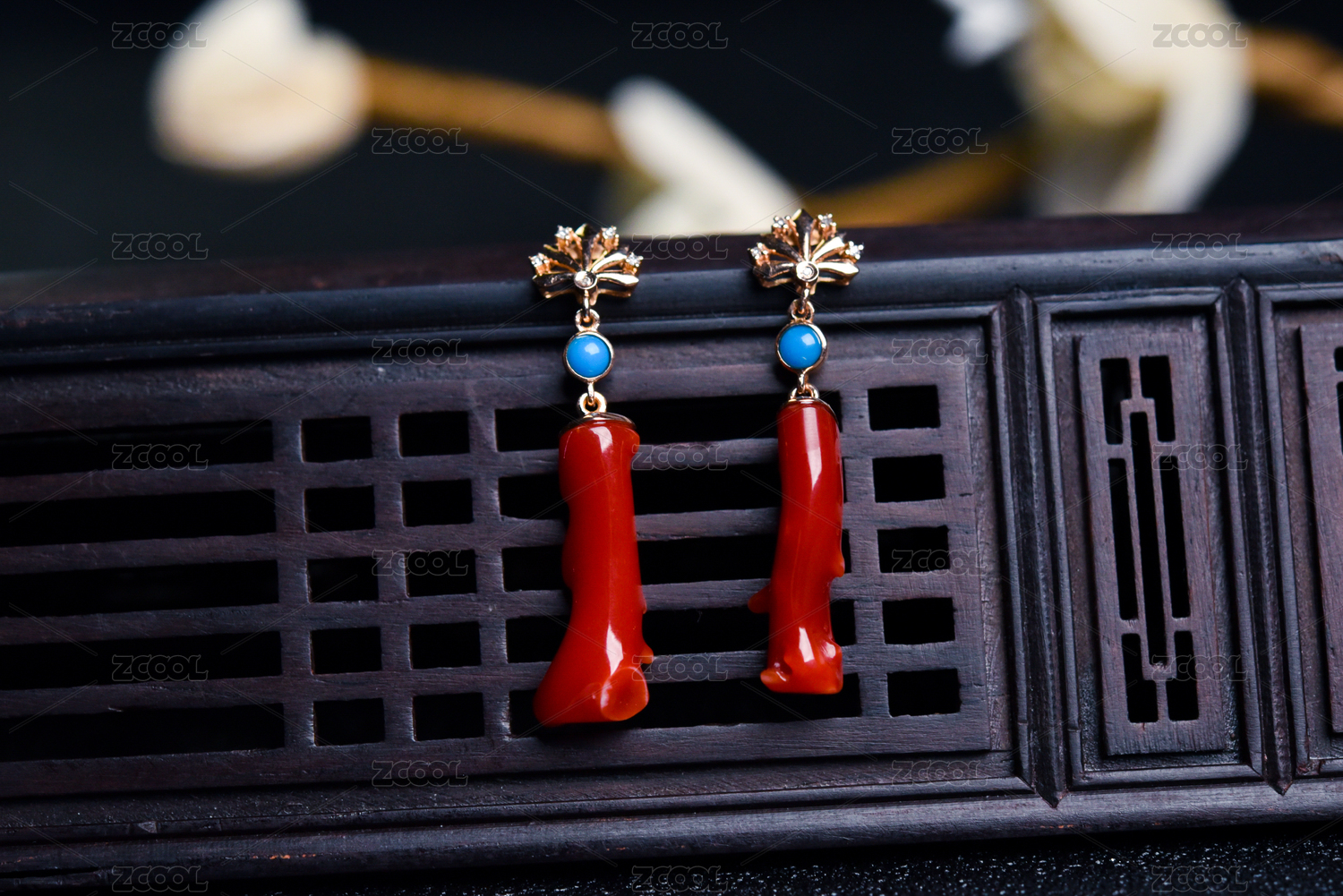 红珊瑚首饰耳坠