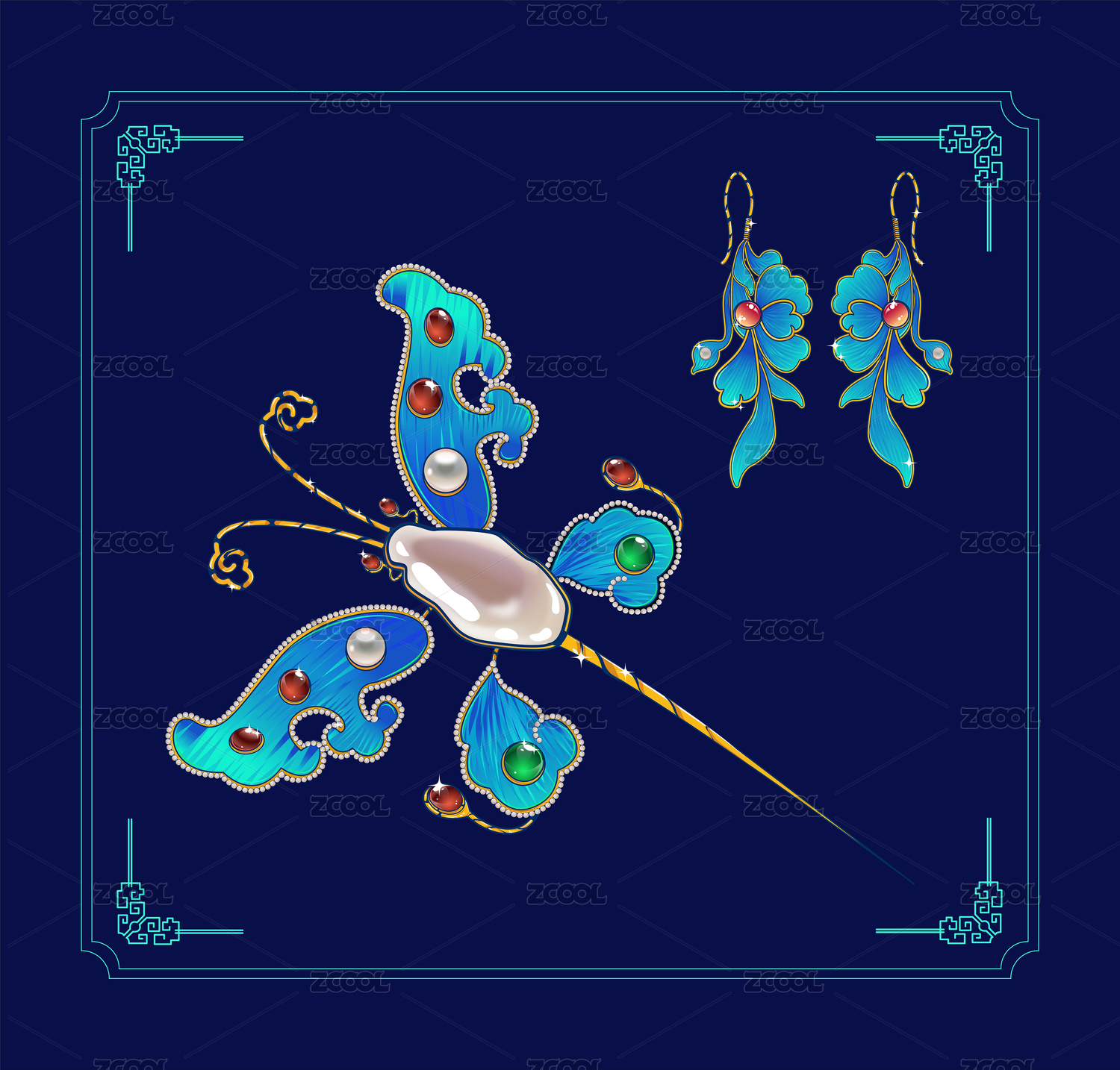蝴蝶点翠发簪耳坠首饰特写