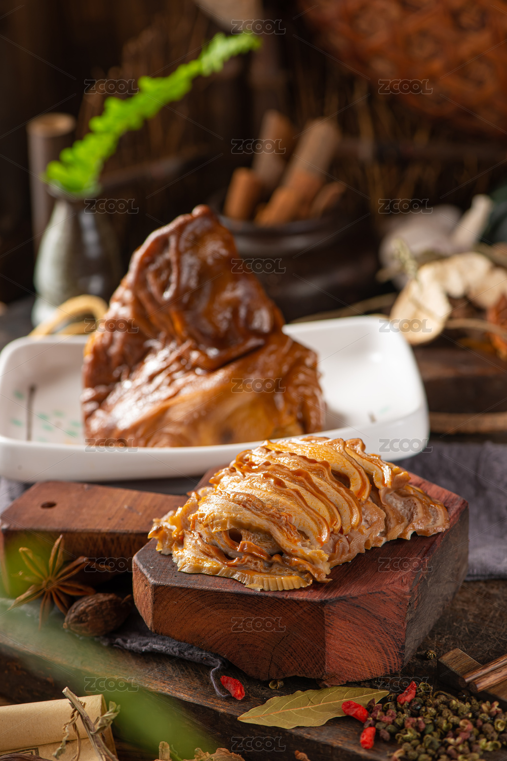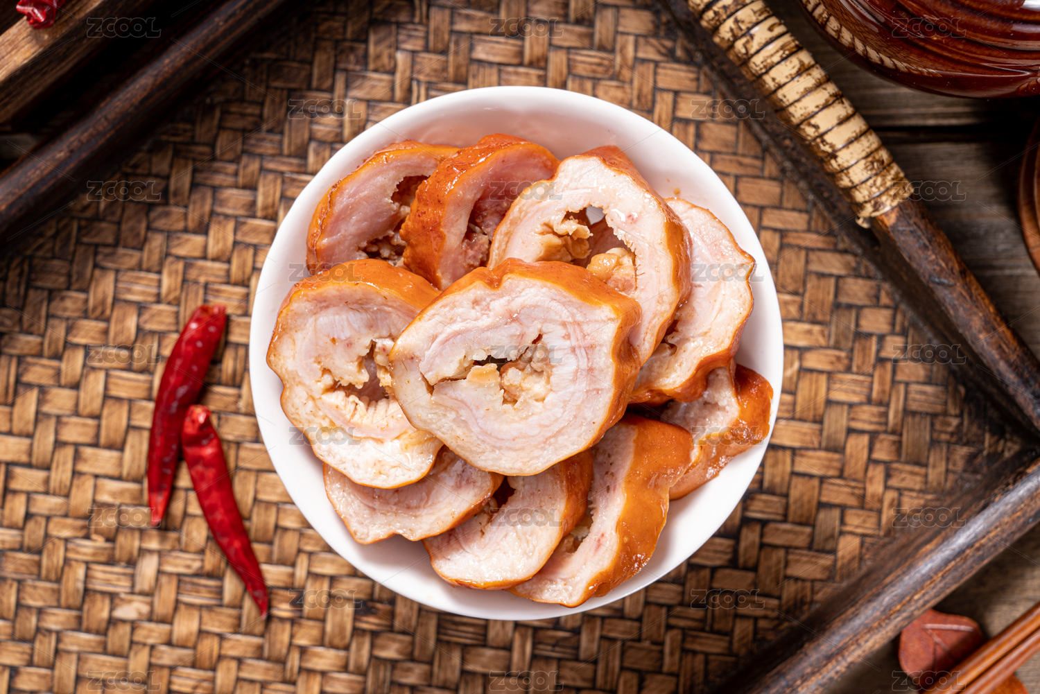 竹编小蒸笼里的火锅卤菜卤猪肚毛肚