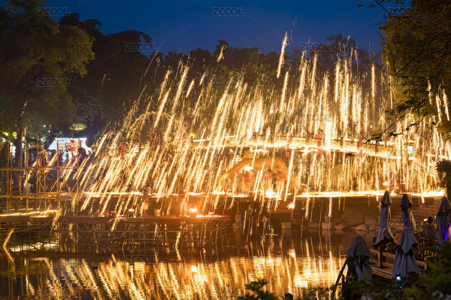 成都黄龙溪古镇春节打铁花舞龙舞火龙