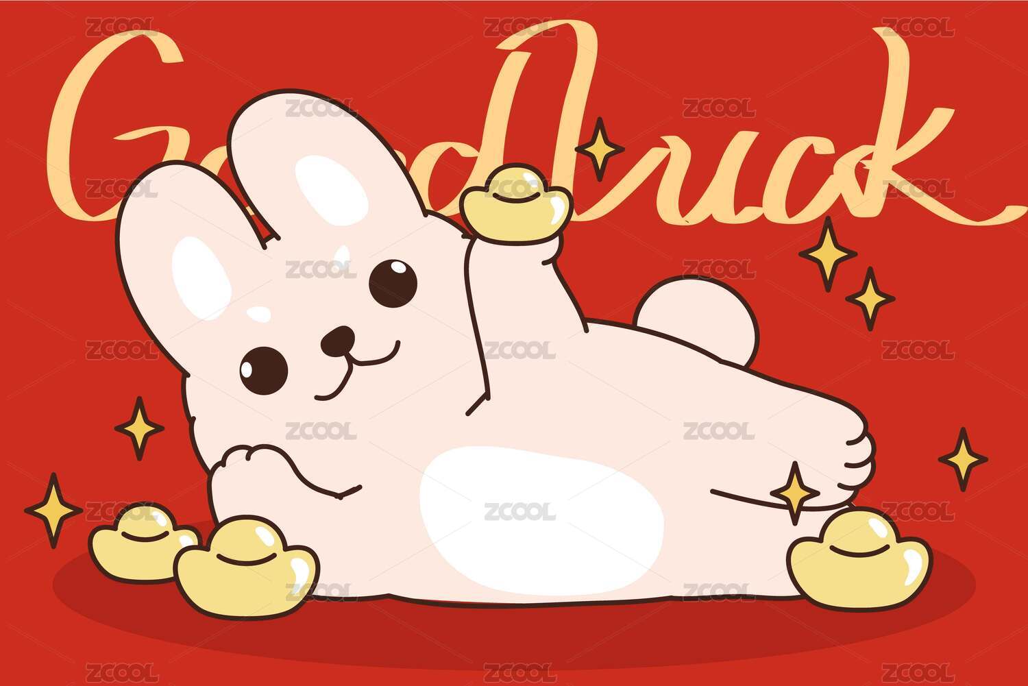 可爱卡通动物新年幸运招财兔子