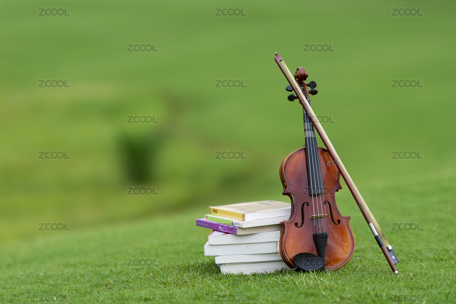春天太阳升起,小女孩在乡村田野上拉小提琴