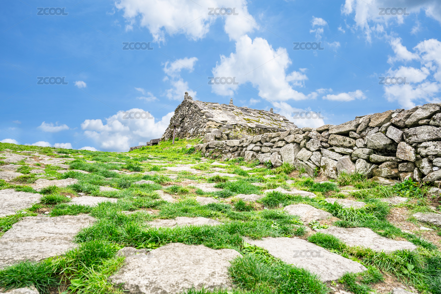 中国萍乡武功山葛仙坛,山顶上的石头房子