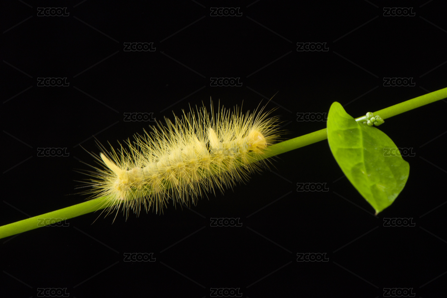 桑叶上的蚕卵和刚刚孵化的蚕宝宝