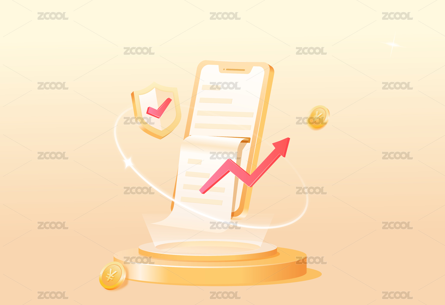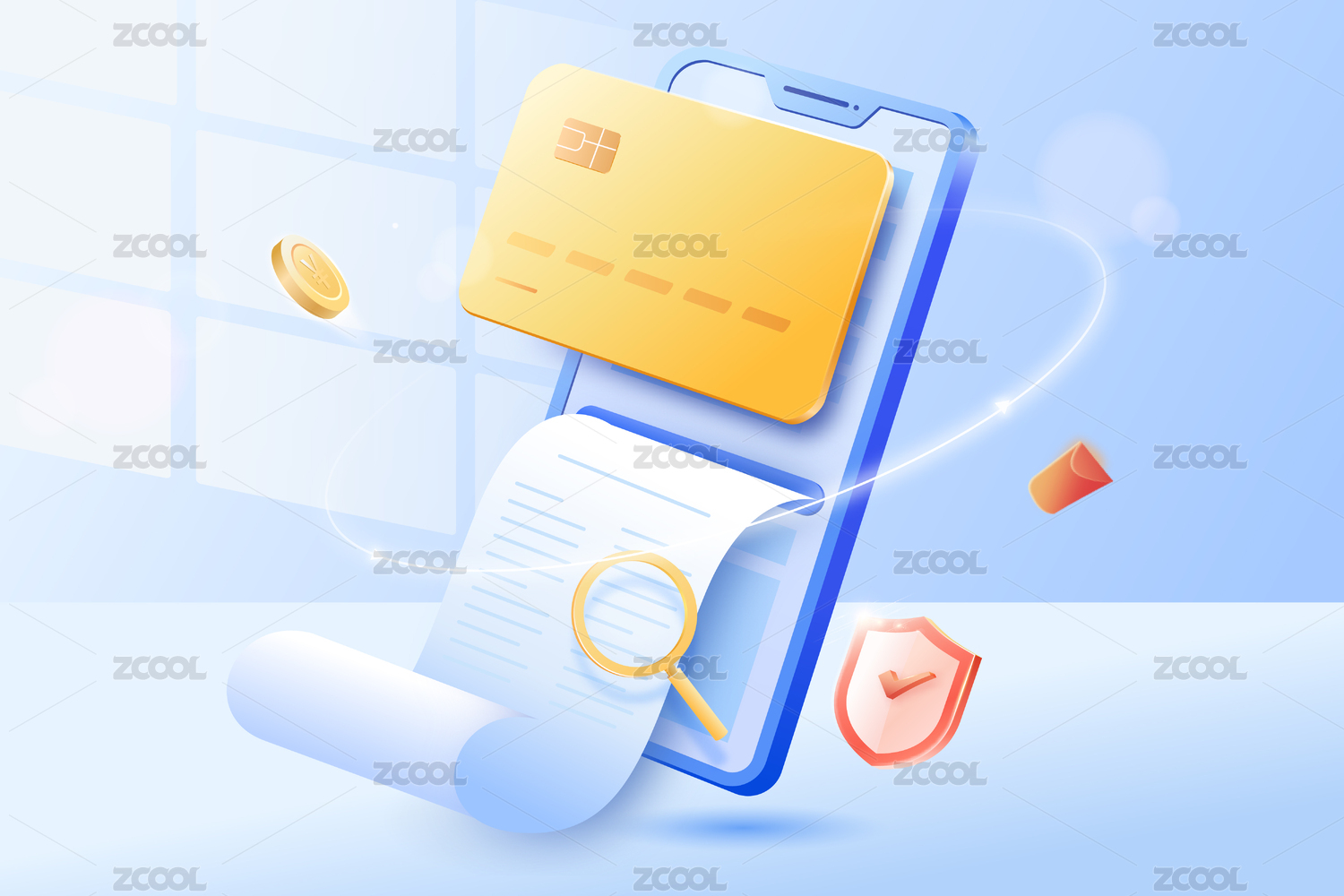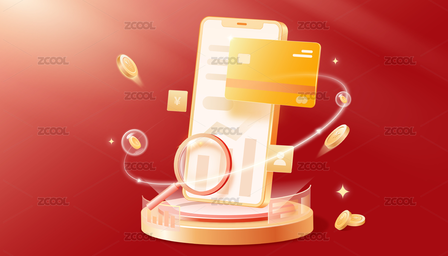 3D金融理财保险银行手机银行数据插画