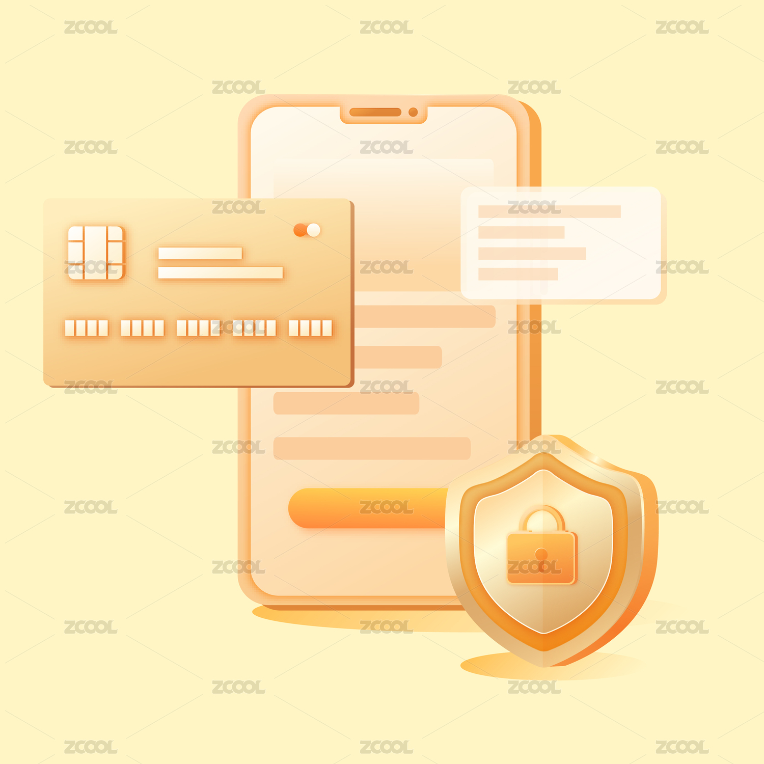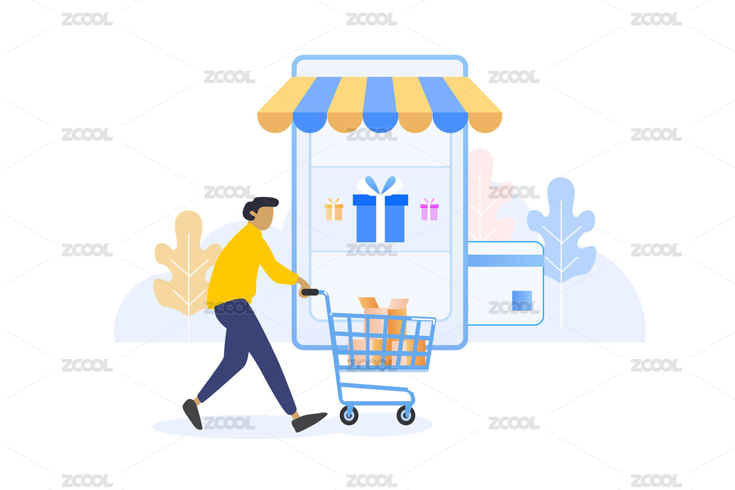 购物礼盒手机银行卡矢量插画