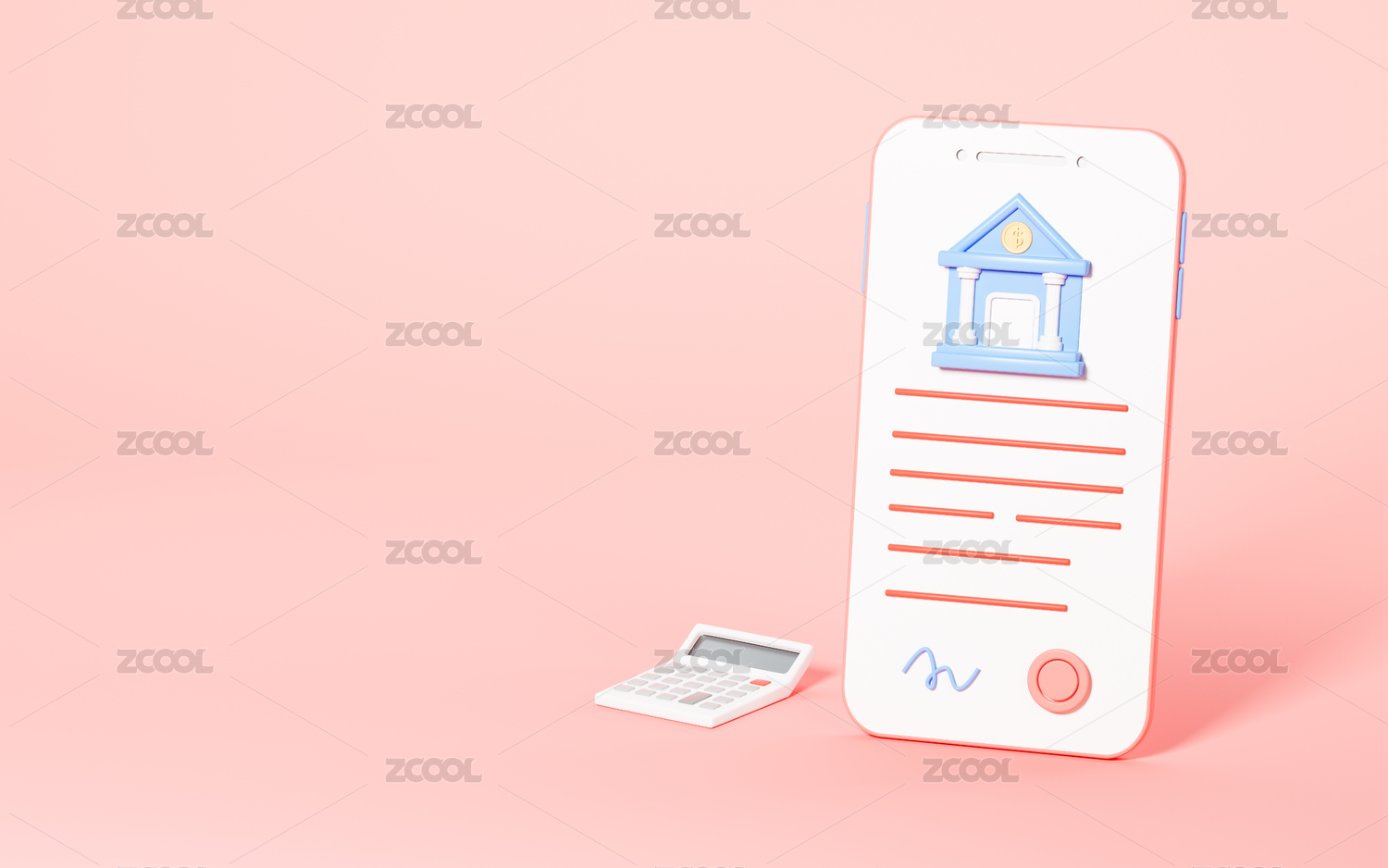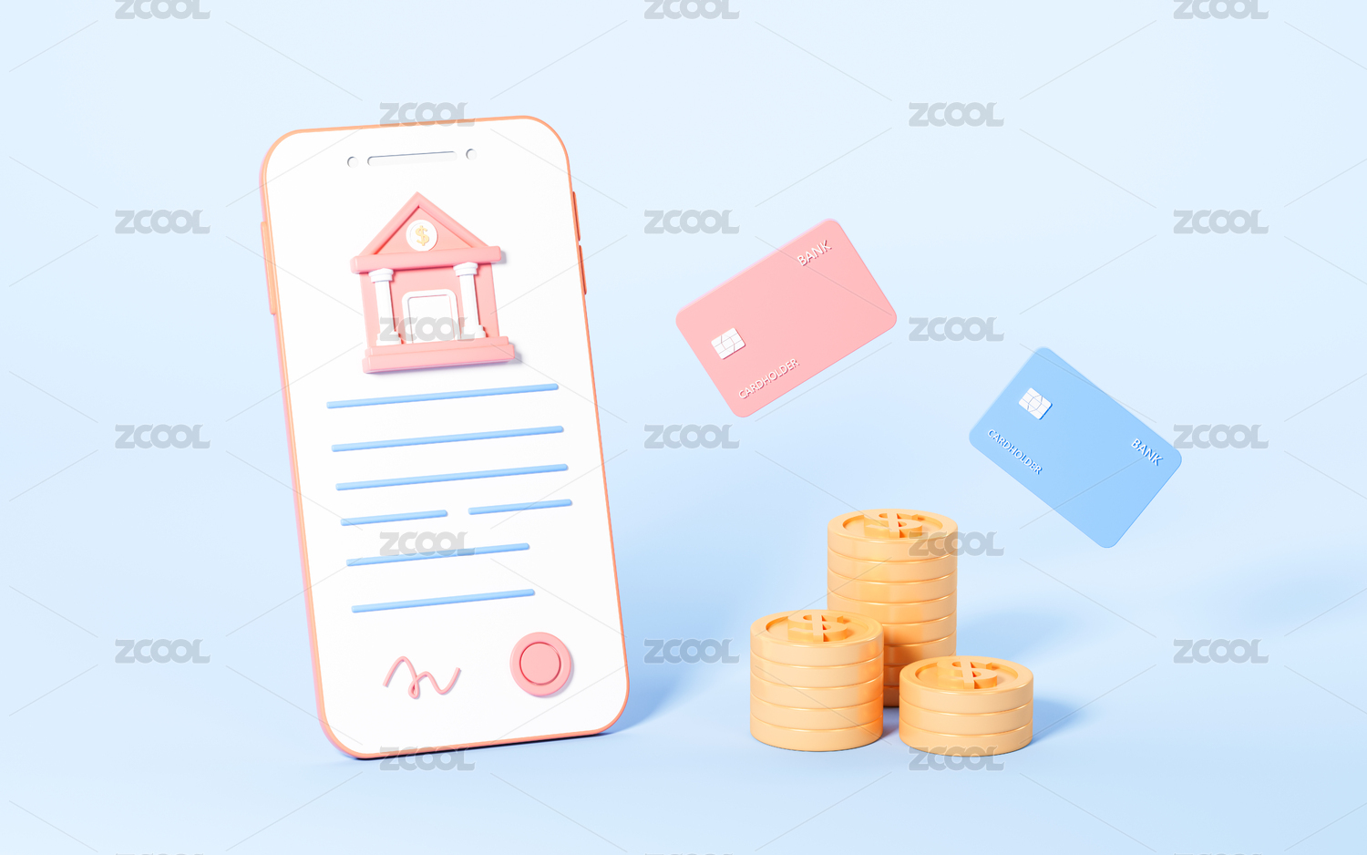房子和手机银行3D渲染