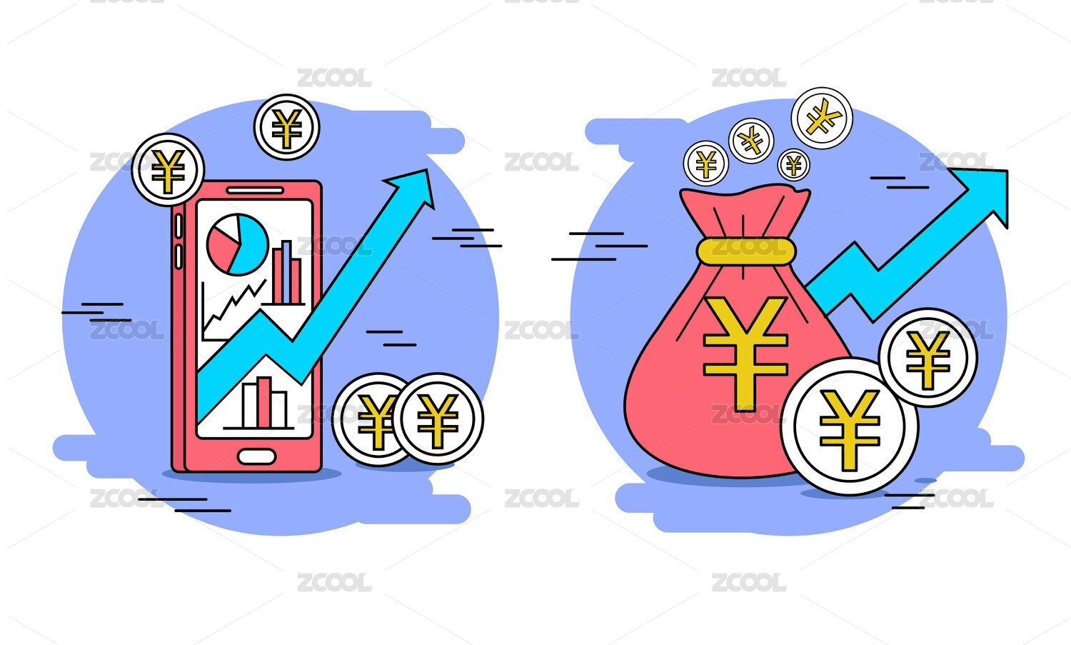 金融理财银行手绘卡通矢量插画
