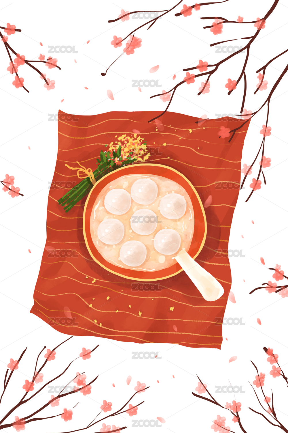 黄色餐布上的一碗腊八粥节日插画淡黄色底
