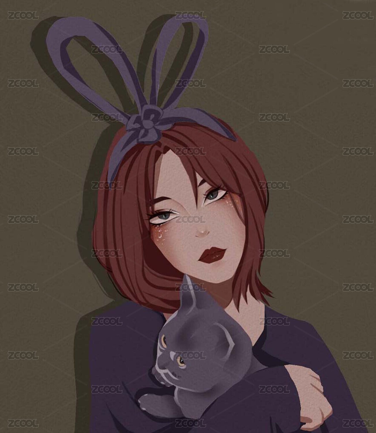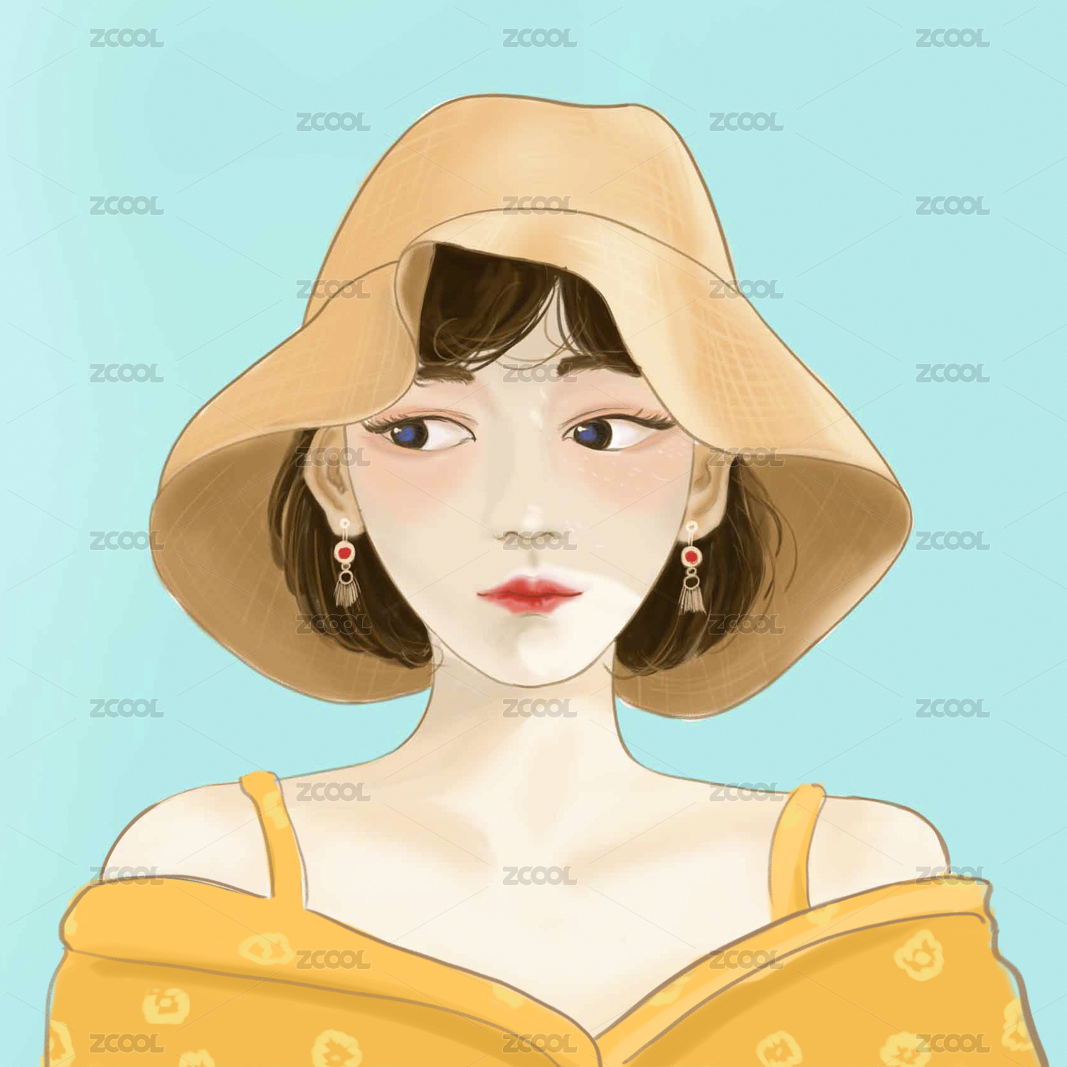 一个扎着发髻带着黄耳环蓝项链手托腮的女孩