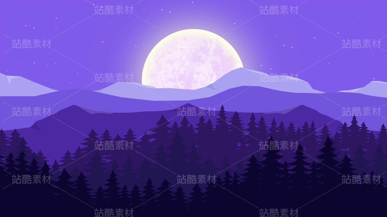 循环动态扁平化夜晚剪影视频