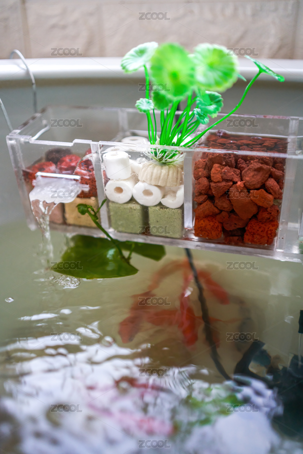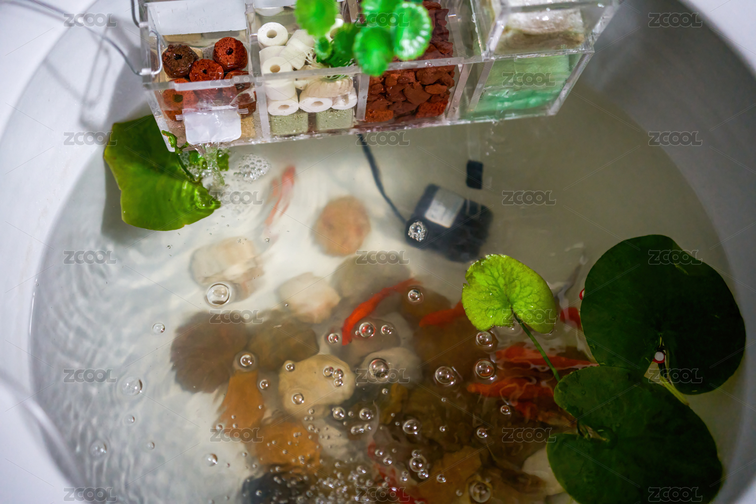 养金鱼缸的水过滤循环净化系统特写