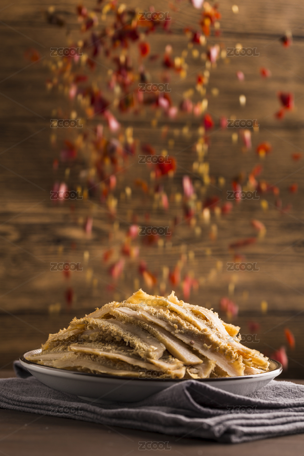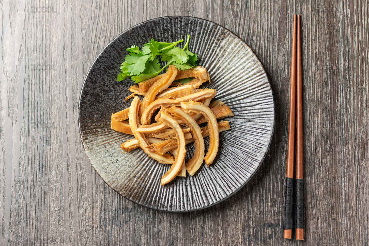 家常菜酱牛肚特写木桌面背景