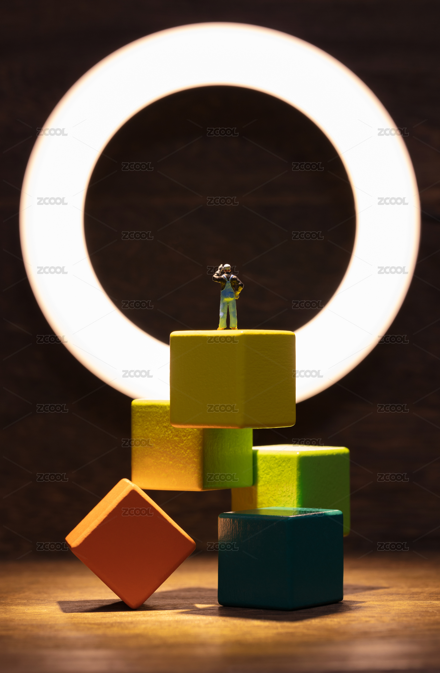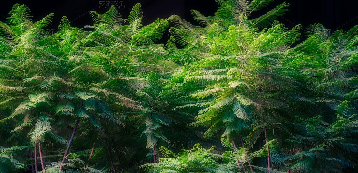 蓝黑色背景下光束照射着玻璃花瓶内的白色插花(套图)