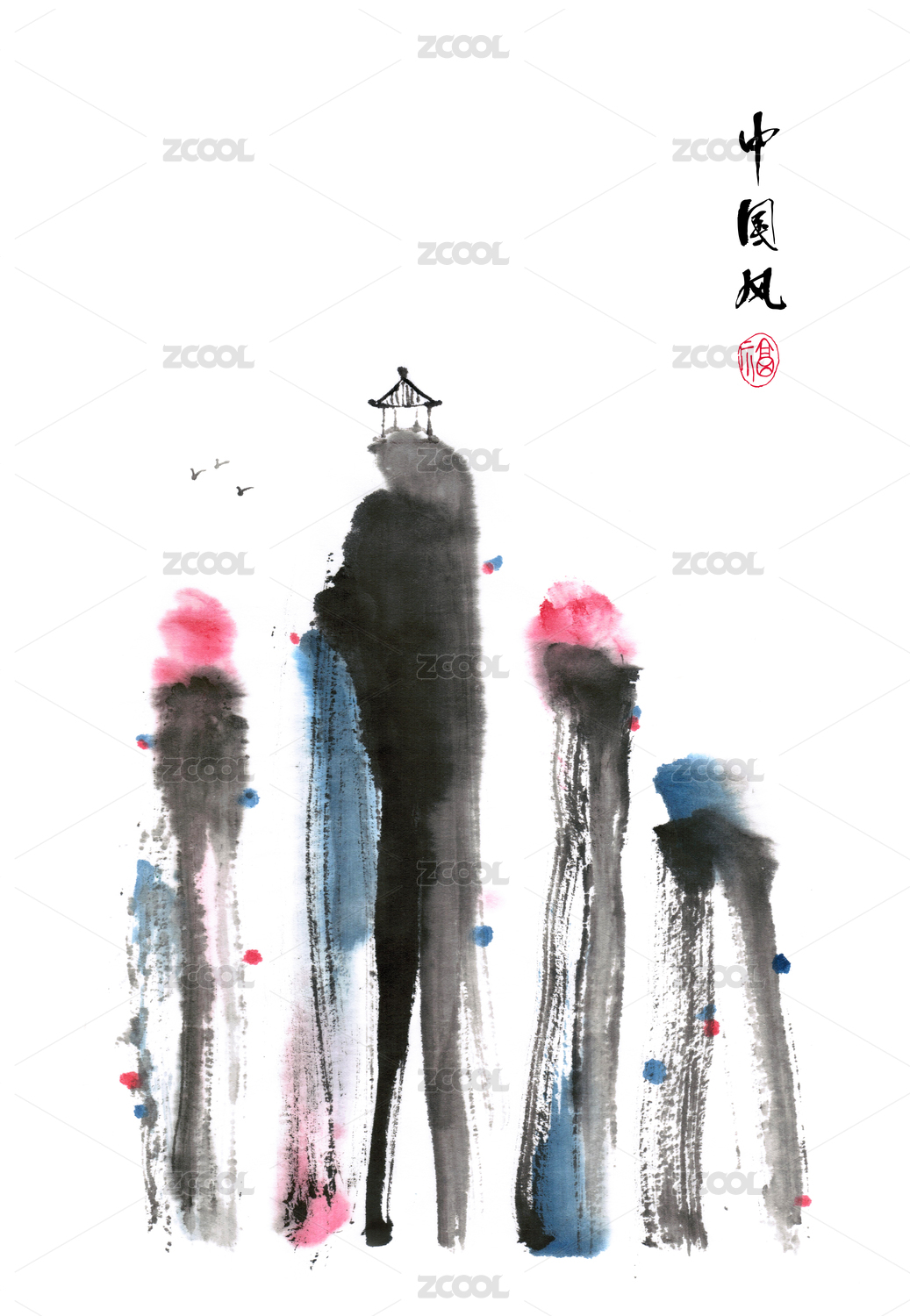 抽象现代国画 新国风山水画