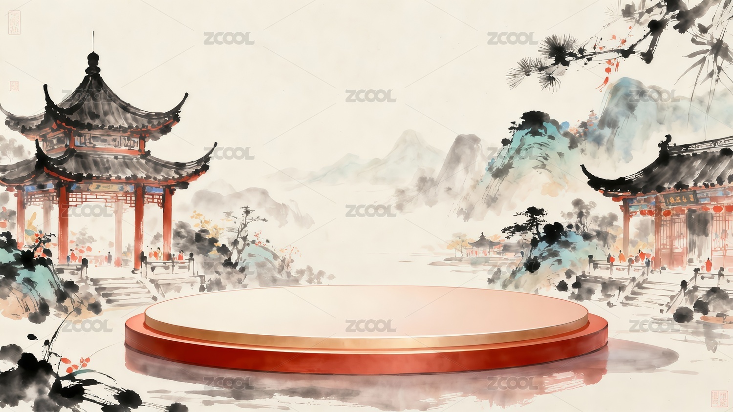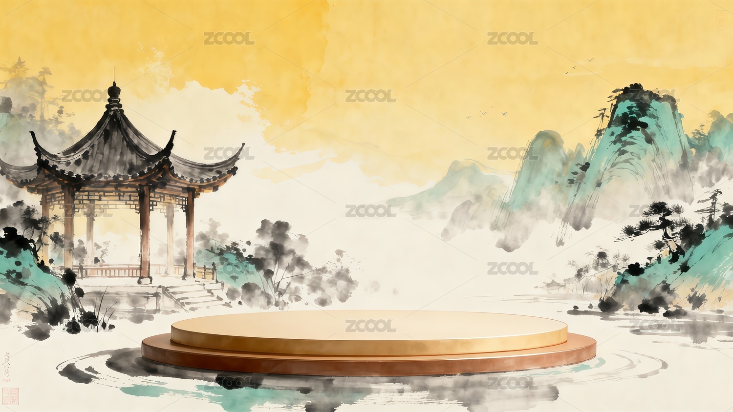 国画风格山水背景