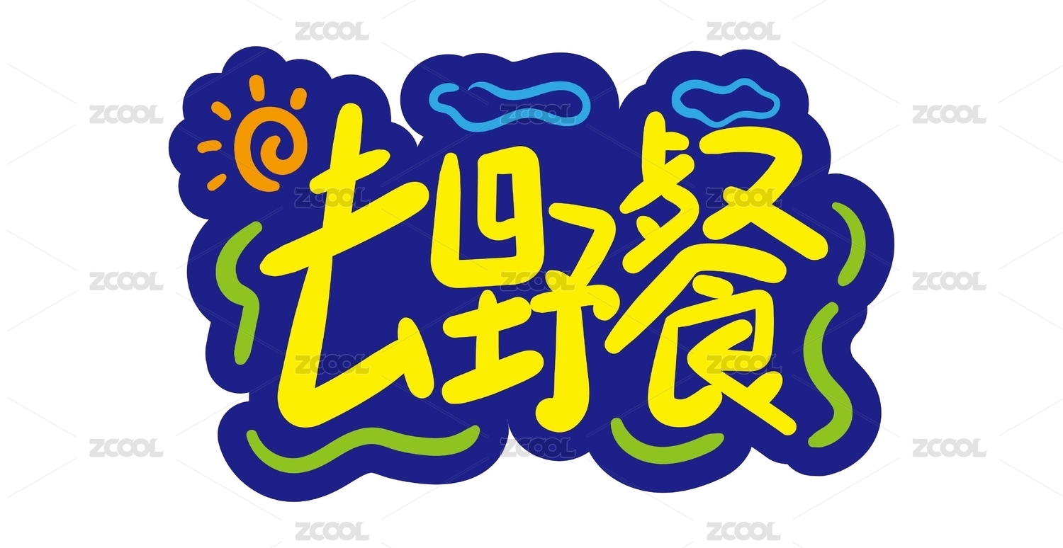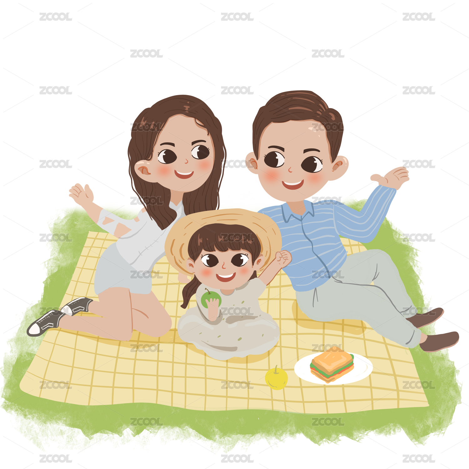 夏日郊游湖泊水岸野炊快乐童年简笔画插画