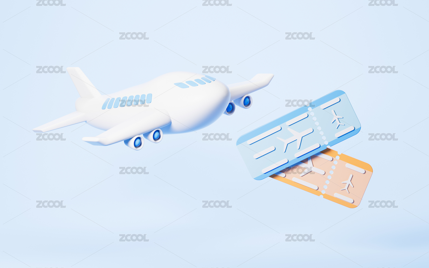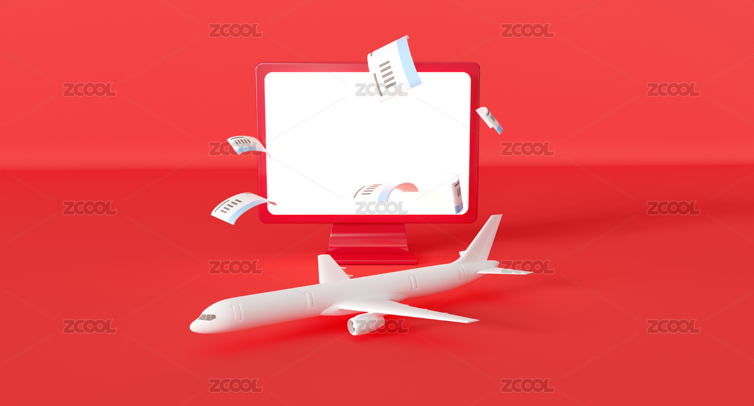 卡通飞机和机票3D渲染