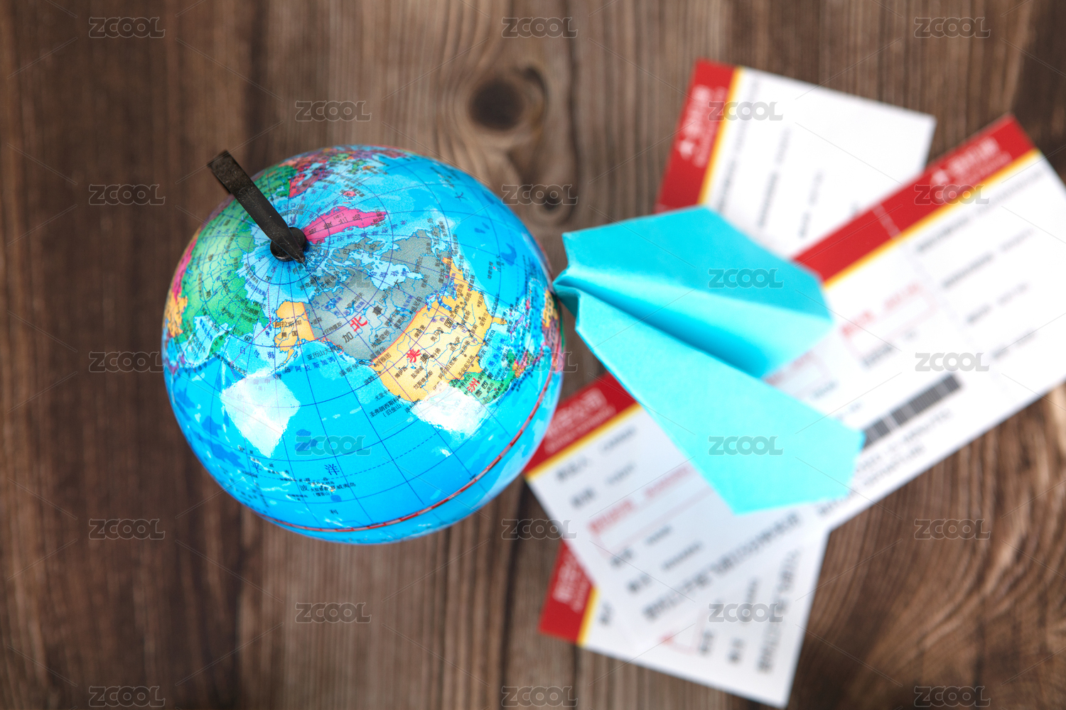 地球仪和飞机票