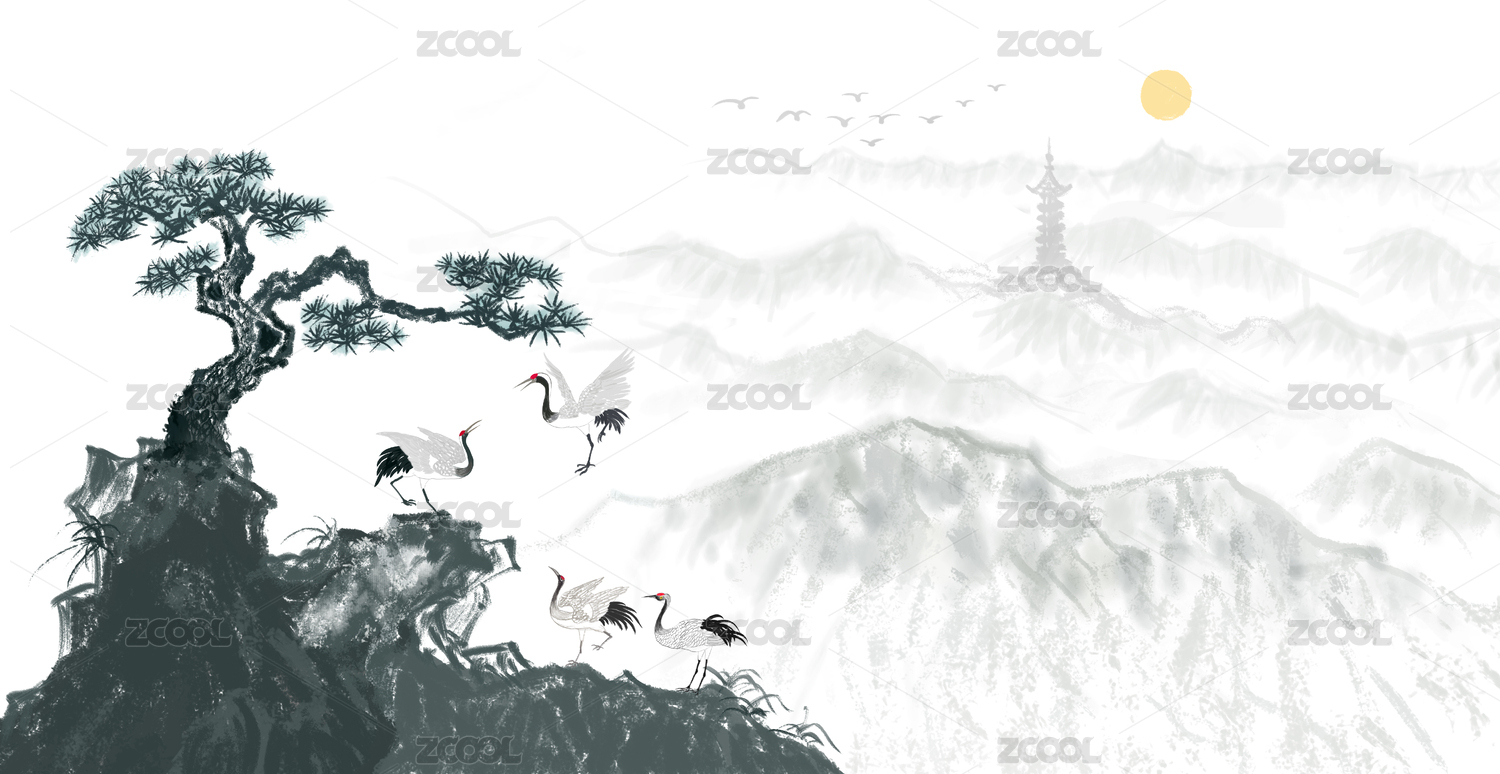 新中式花鸟水墨画禅境花鸟山水画写意山水画意境水墨