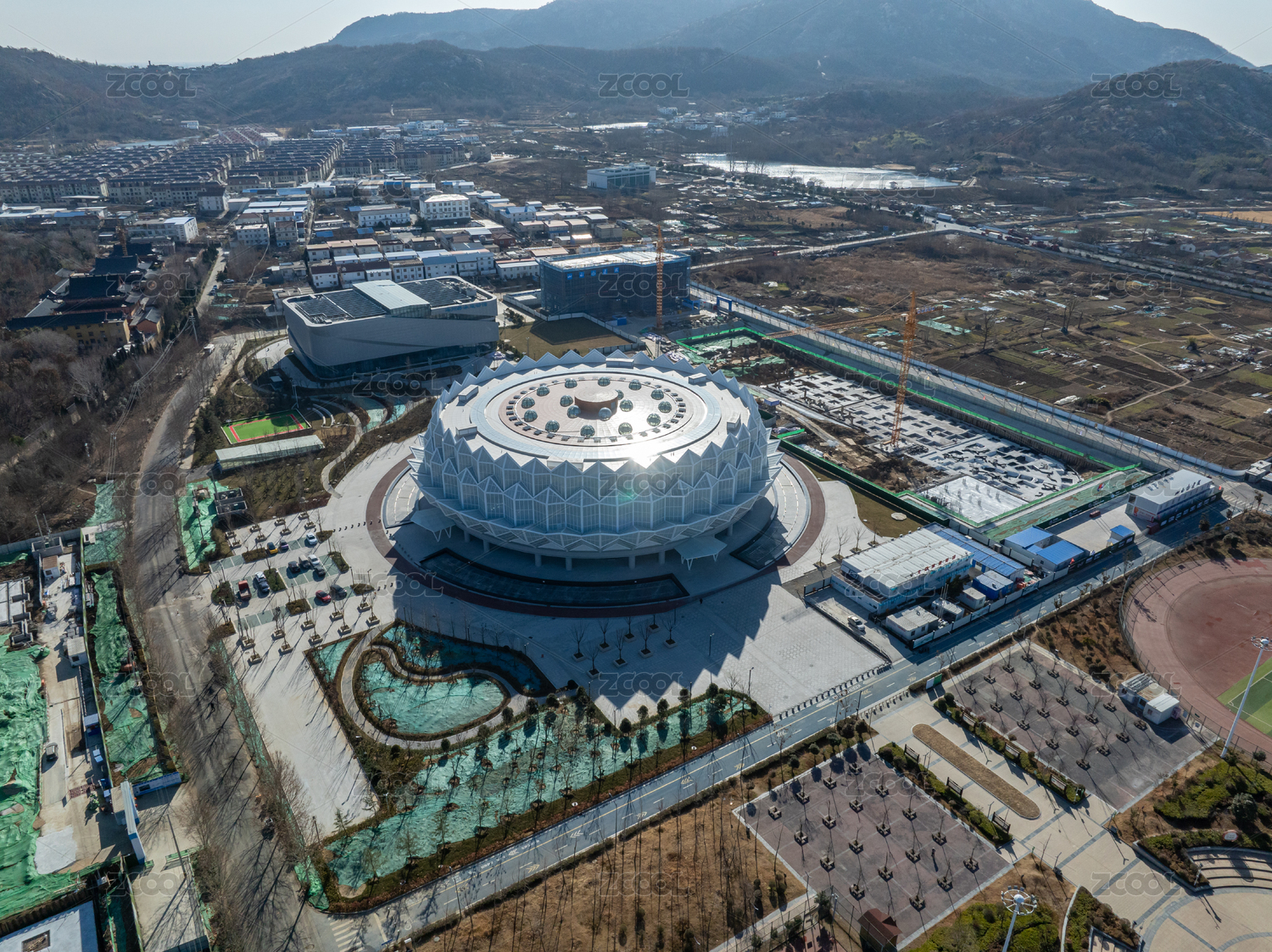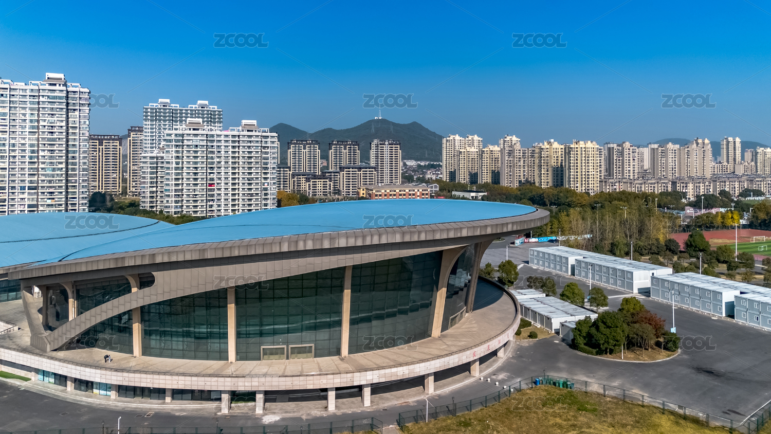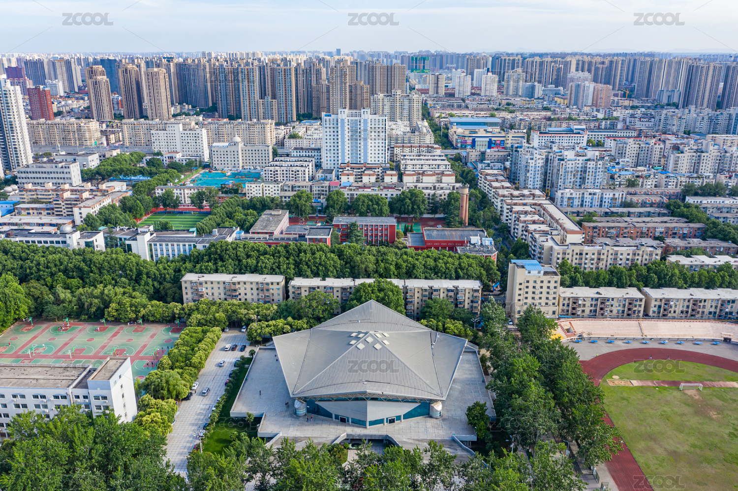航拍郑州大学南校区体育馆室内体育运动场馆