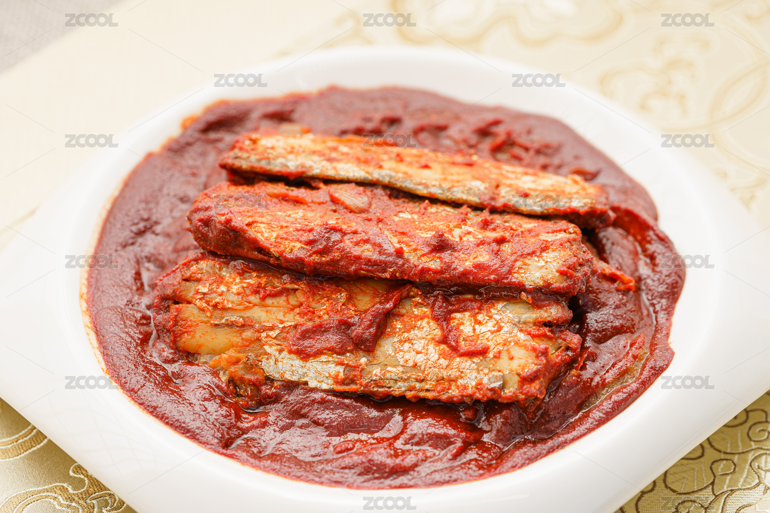简单背景下的韩式红烧带鱼