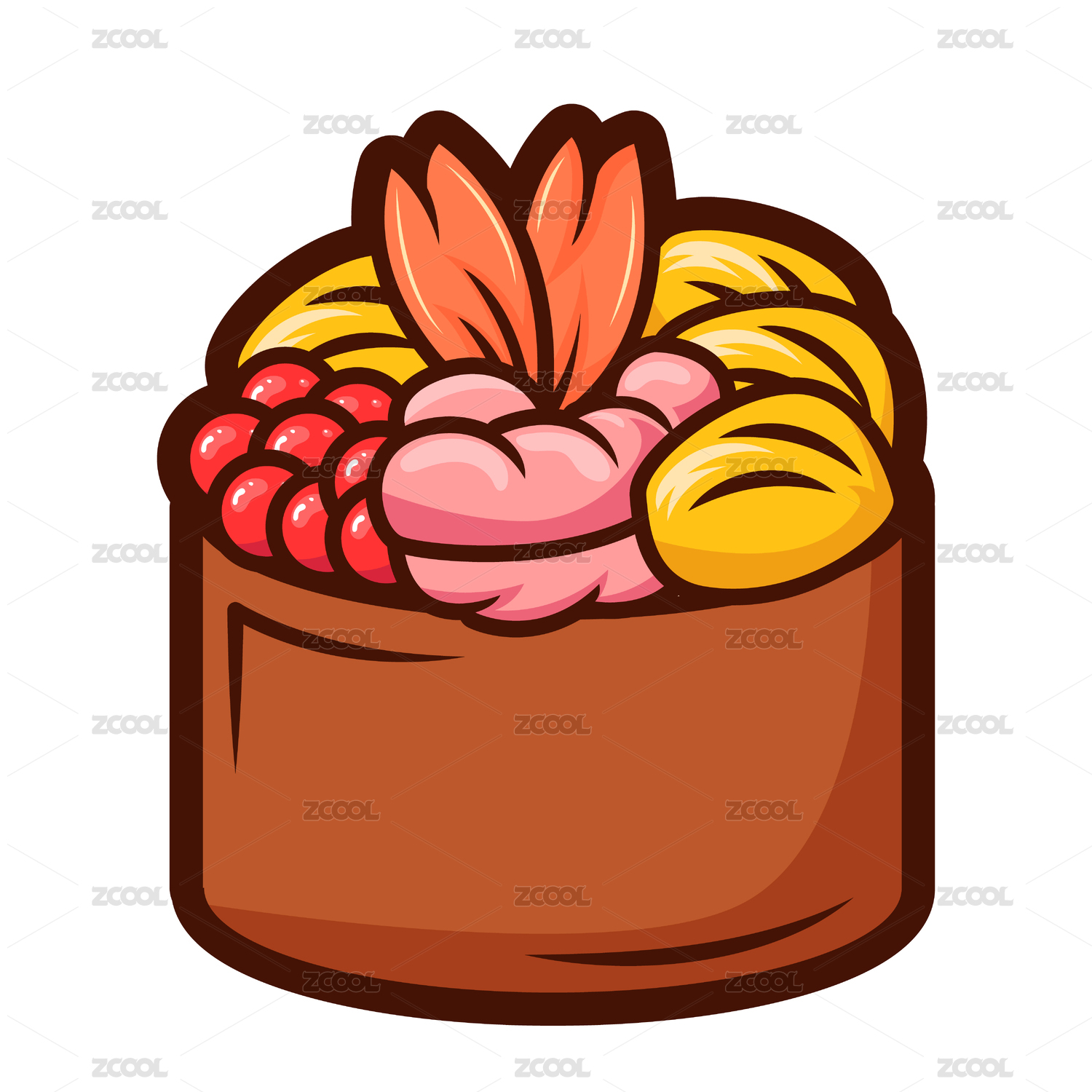 矢量美食日韩料理虾肉鱼籽寿司紫菜包饭